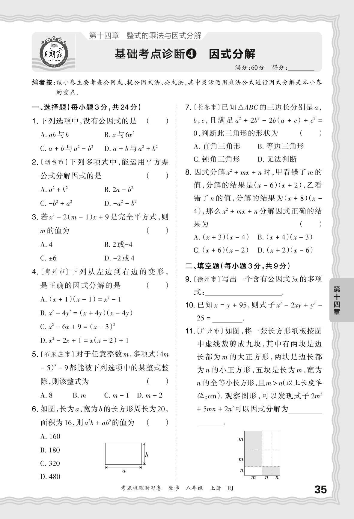2024秋上册八年级数学人教版 第十四章 基础考点诊断 因式分解【4】