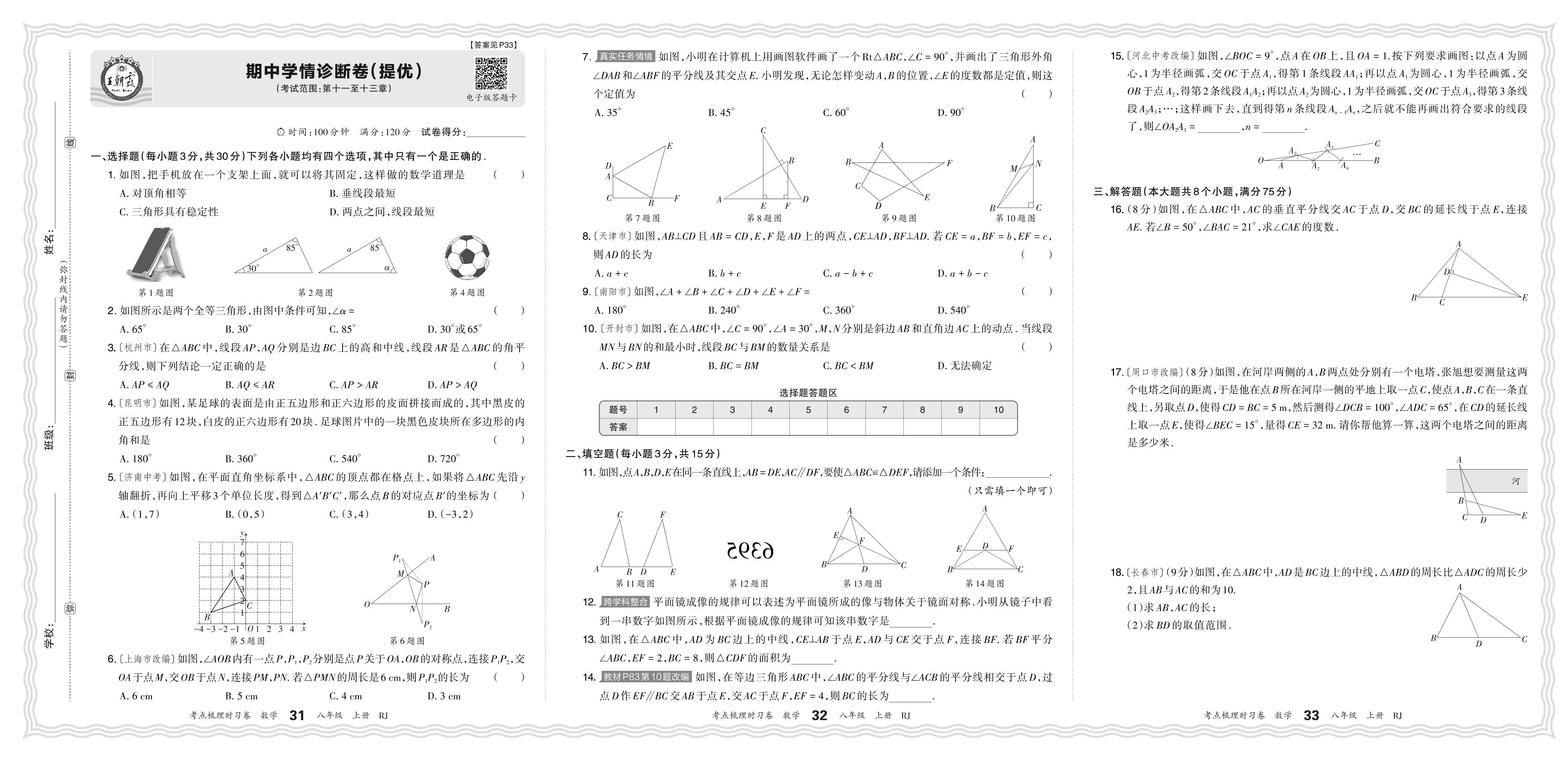 2024秋上册八年级数学人教版 期中学情诊断卷(提优)