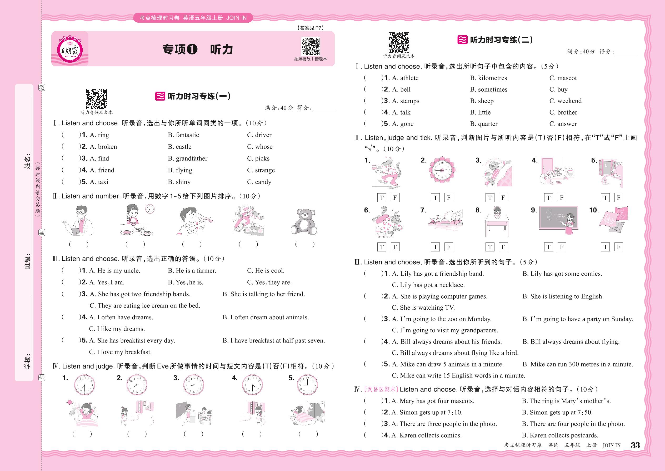 2024秋上册五年级英语剑桥版 期末专项卷PY版·听力【1】