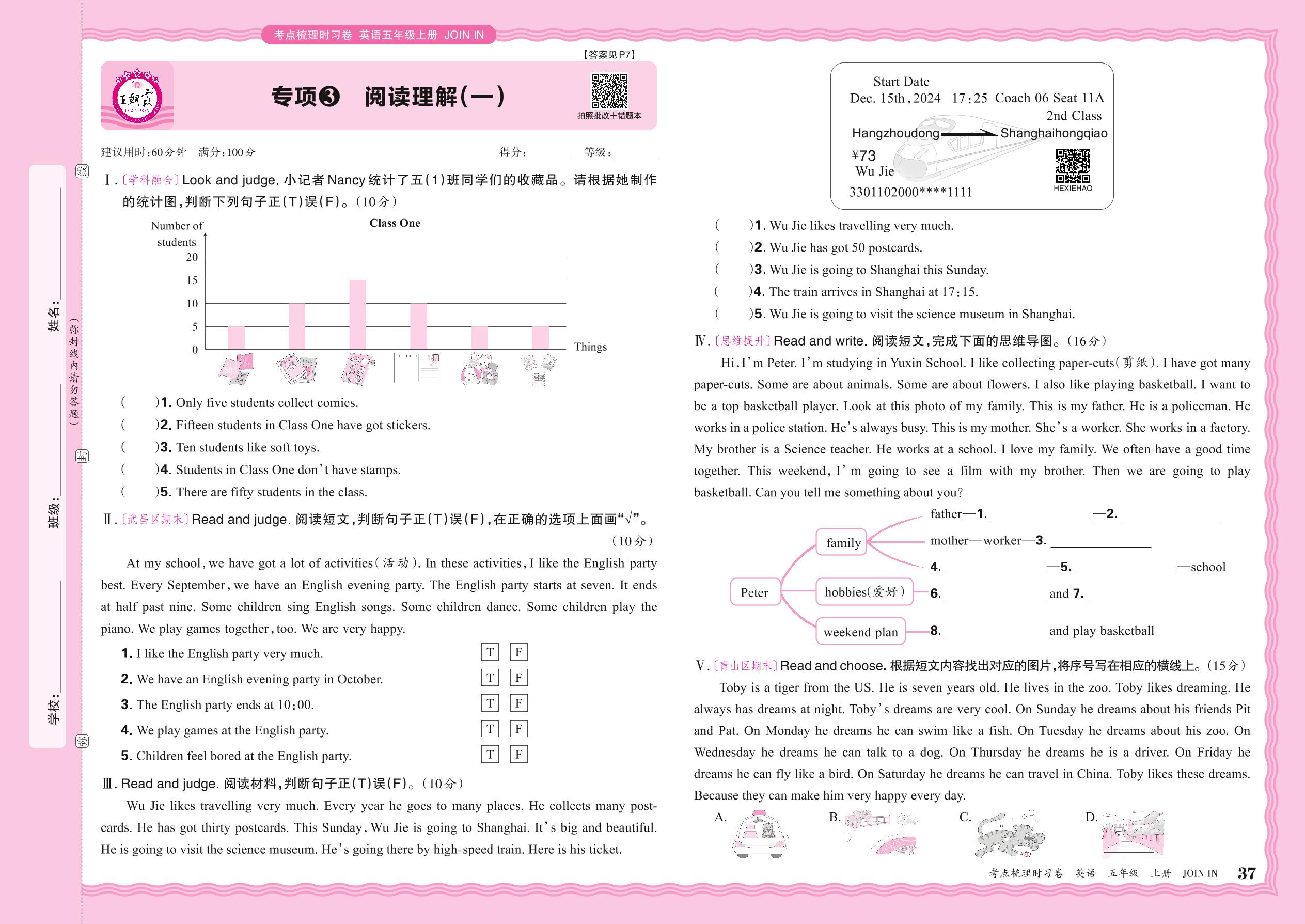 2024秋上册五年级英语剑桥版 期末专项卷PY版·阅读理解(一)【3】