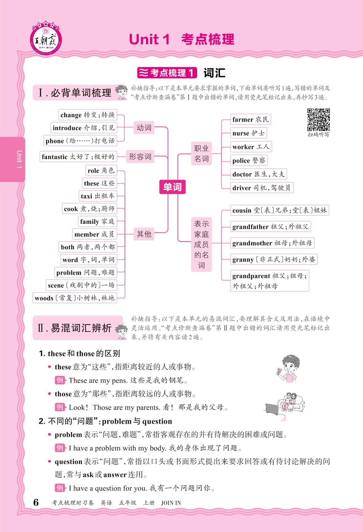 2024秋上册五年级英语剑桥版 考点梳理补缺手册——Unit 1