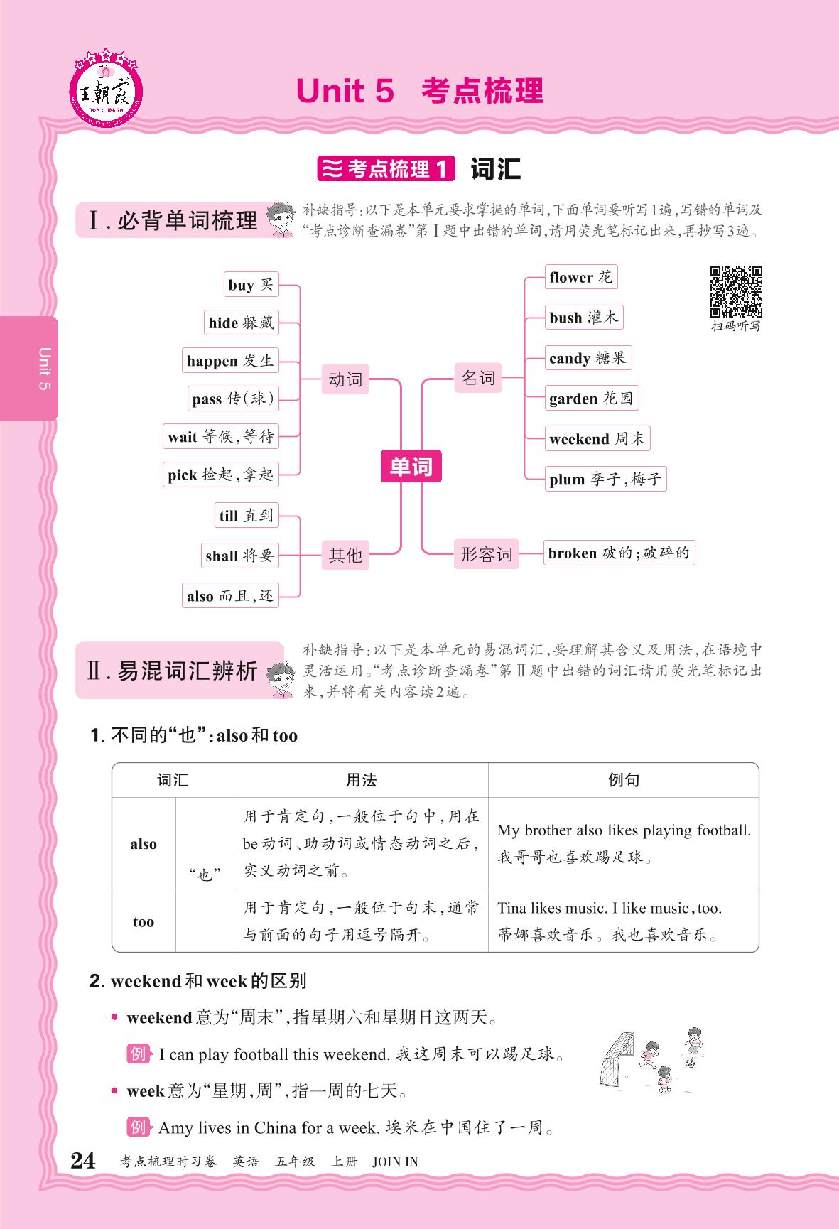 2024秋上册五年级英语剑桥版 考点梳理补缺手册——Unit 5