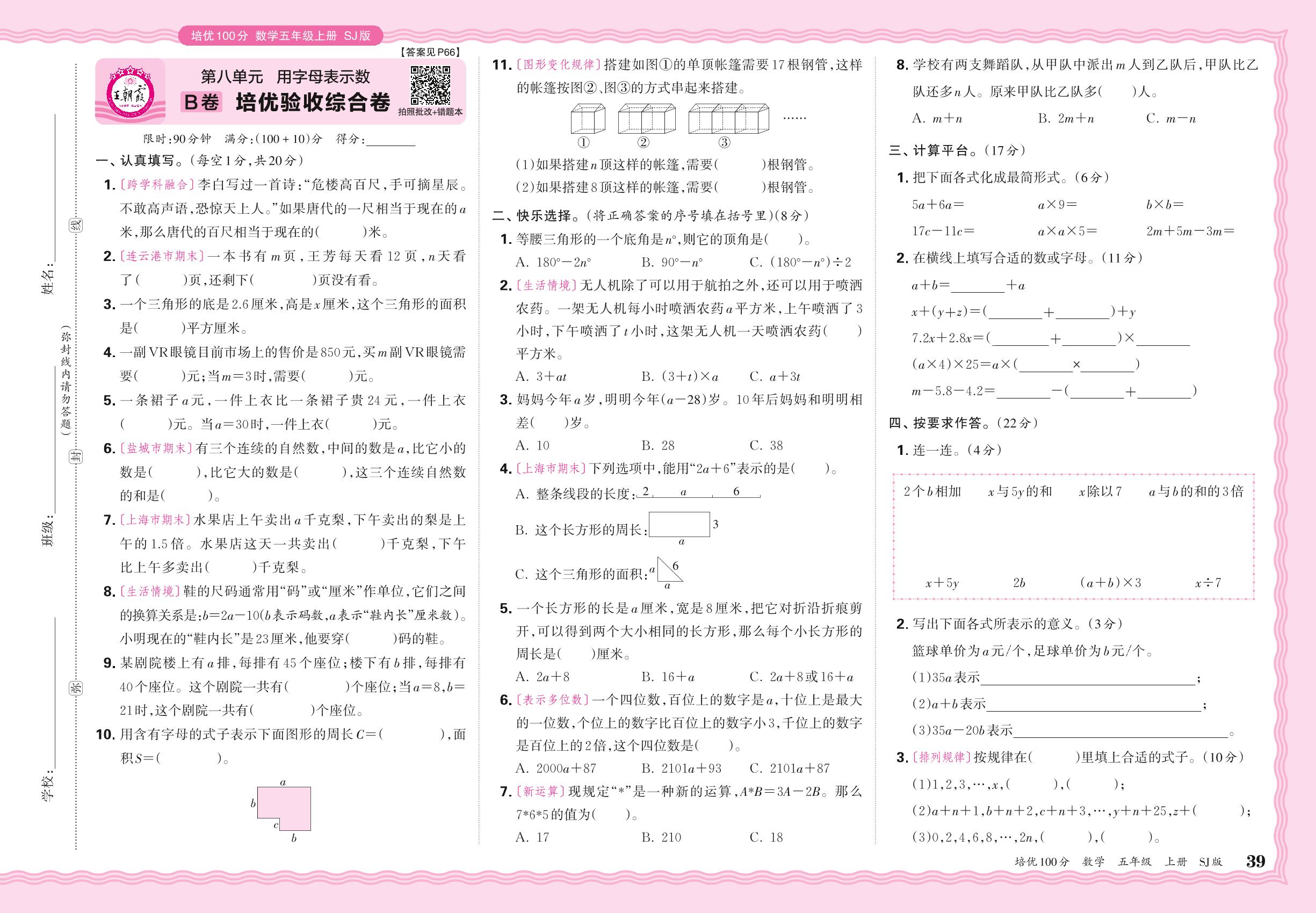 2024秋上册五年级数学苏教版 第八单元B卷 培优验收综合卷_R240827111340036