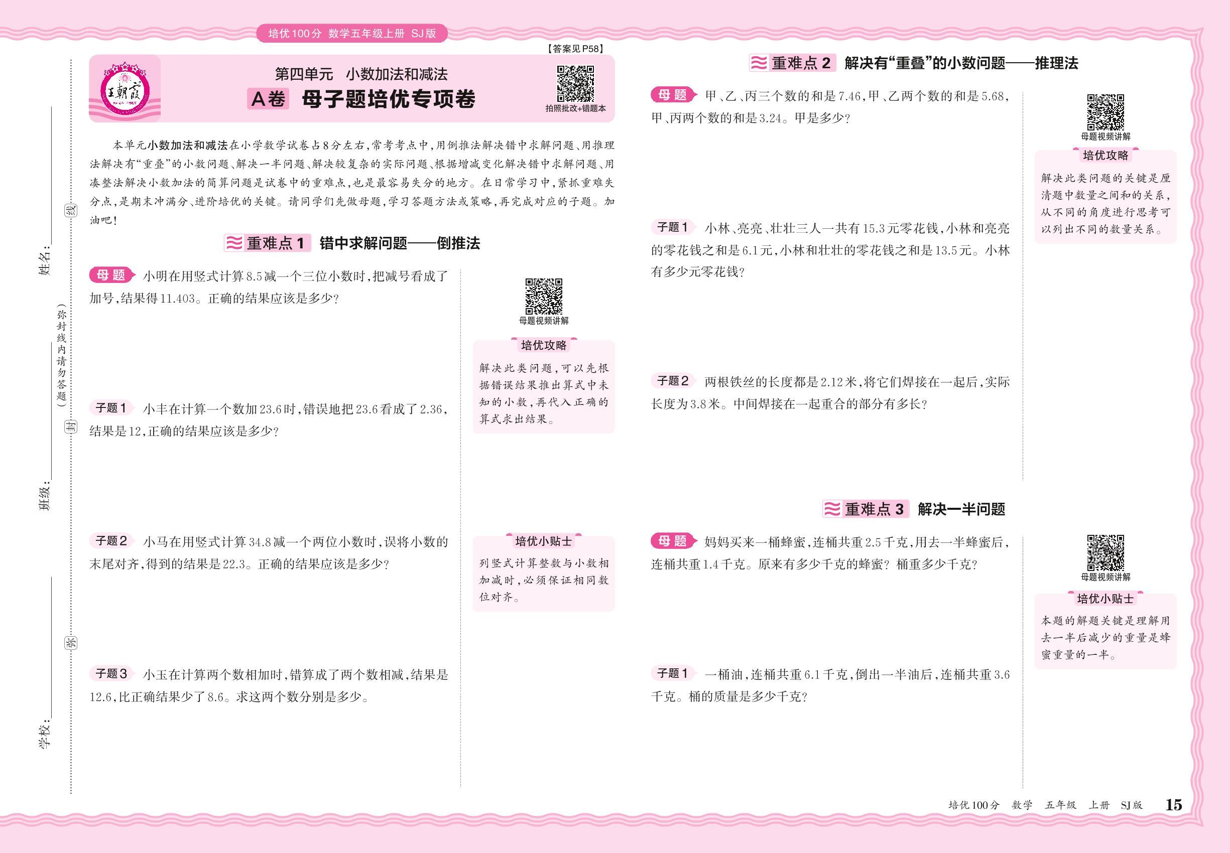 2024秋上册五年级数学苏教版 第四单元A卷 母子题培优专项卷_R240827111344914