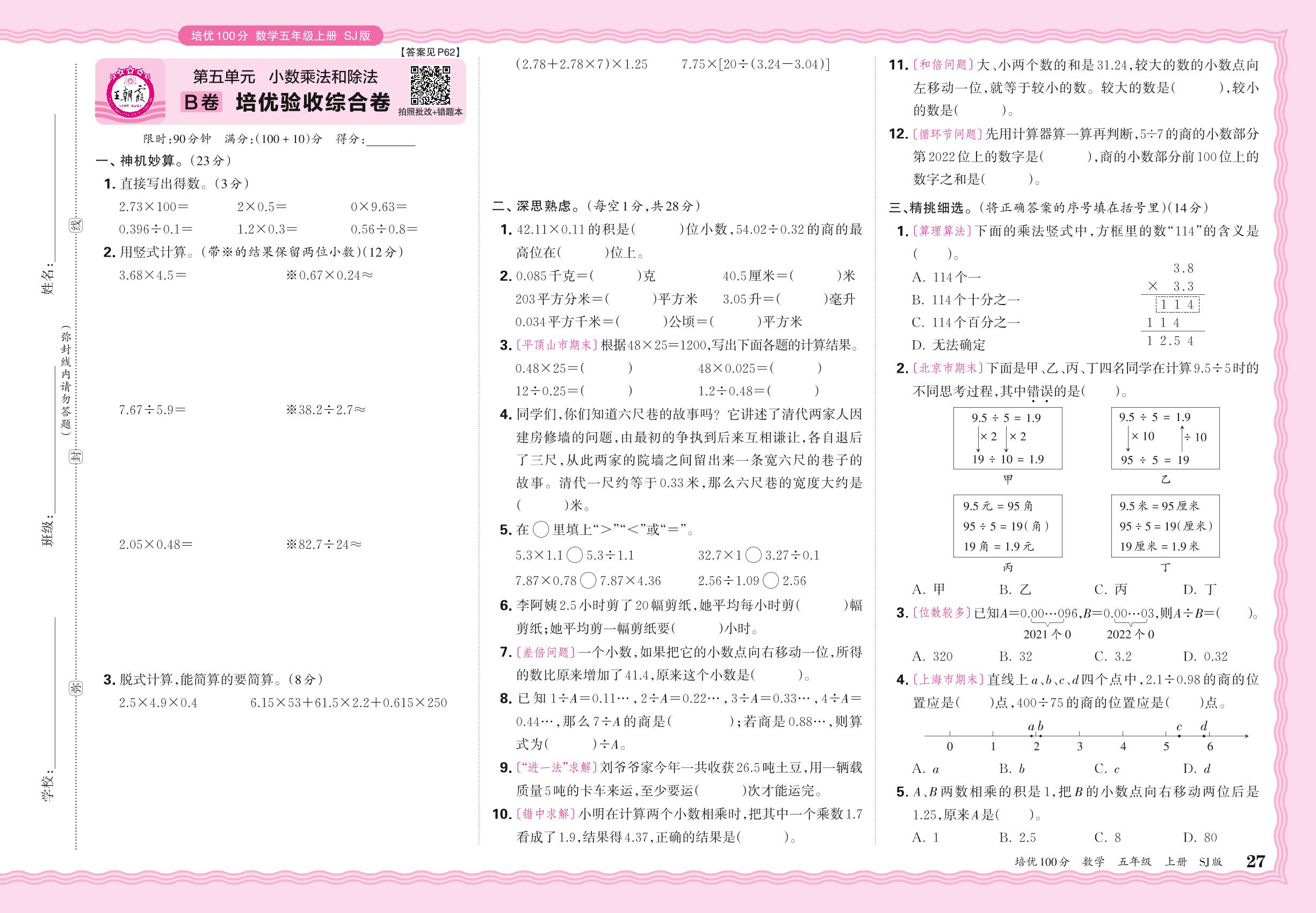 2024秋上册五年级数学苏教版 第五单元B卷 培优验收综合卷_R240827111346045