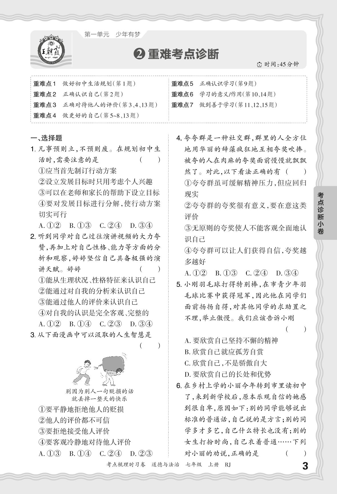 2024秋上册七年级道德与法治人教版 第一单元 考点诊断小卷 重难考点诊断【2】