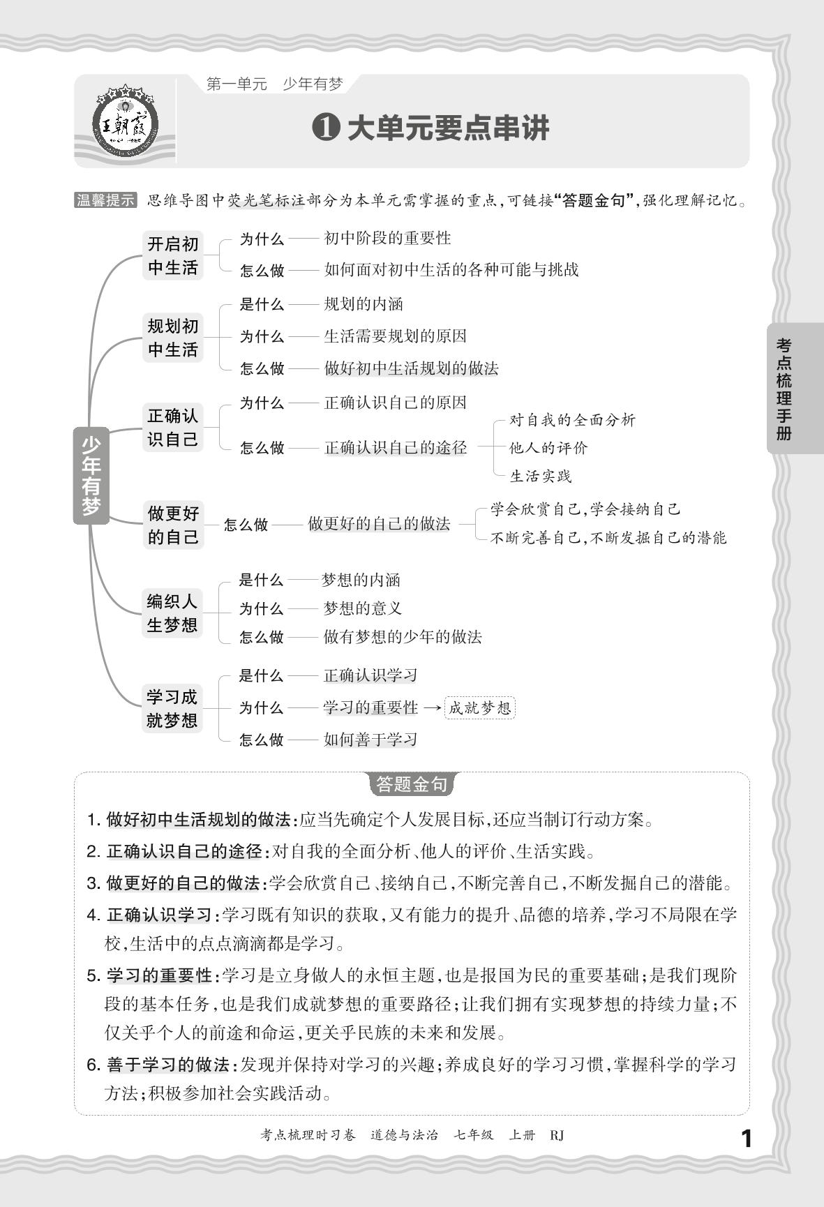 2024秋上册七年级道德与法治人教版 考点梳理手册——第一单元 少年有梦