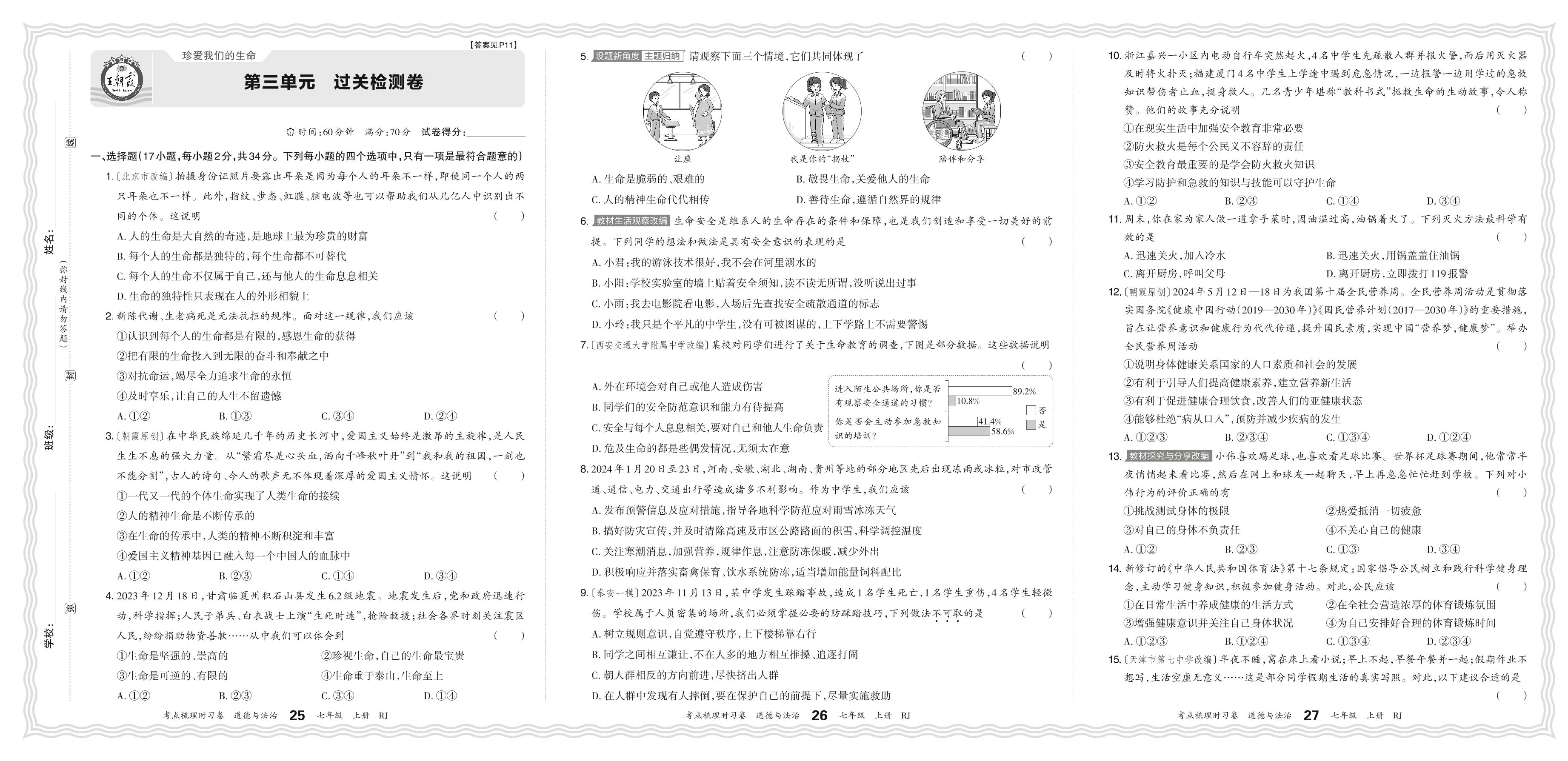 七年级道德与法治人教版(2024)上册单元卷