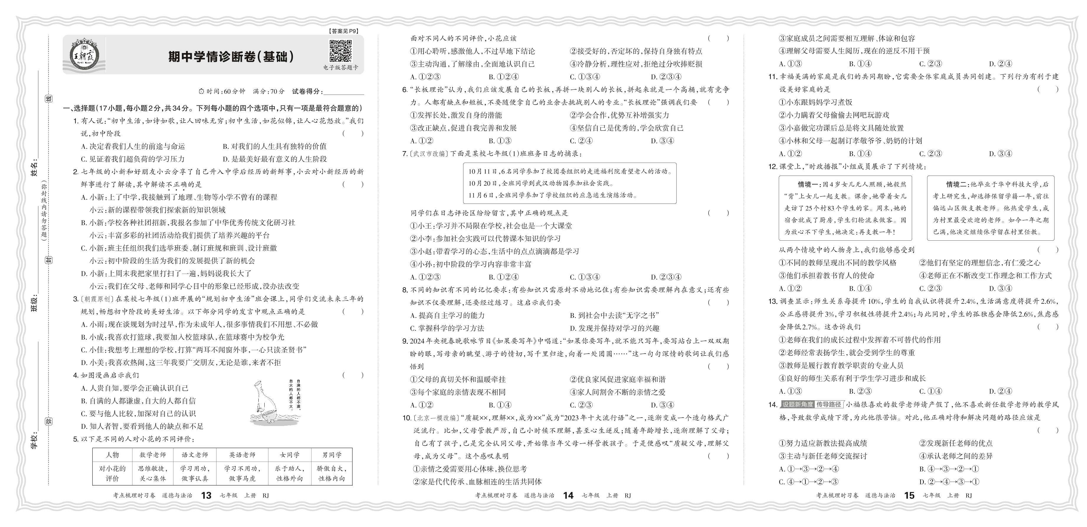 2024秋上册七年级道德与法治人教版 期中学情诊断卷(基础)