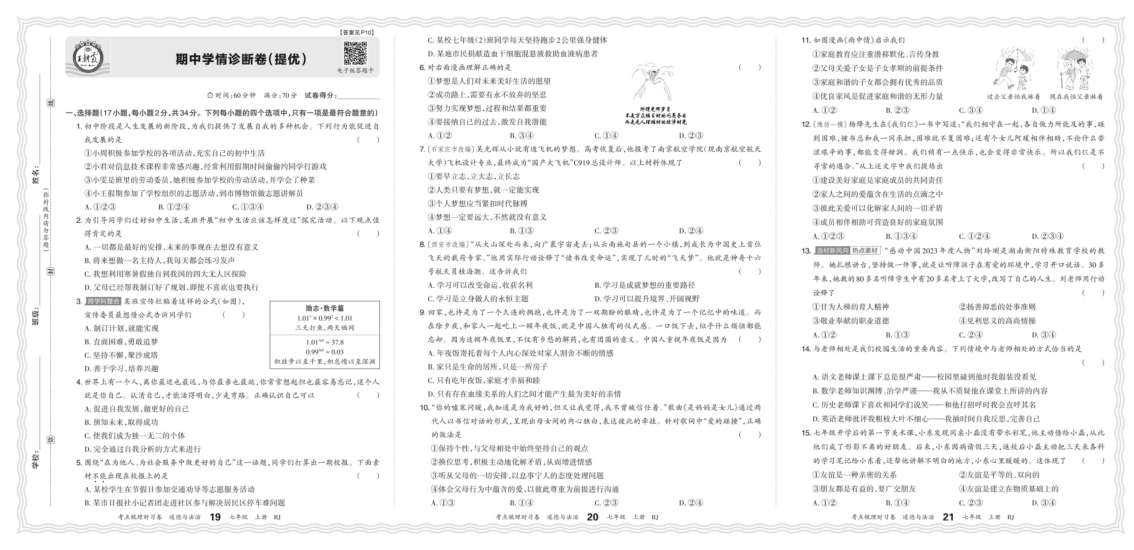 2024秋上册七年级道德与法治人教版 期中学情诊断卷(提优)