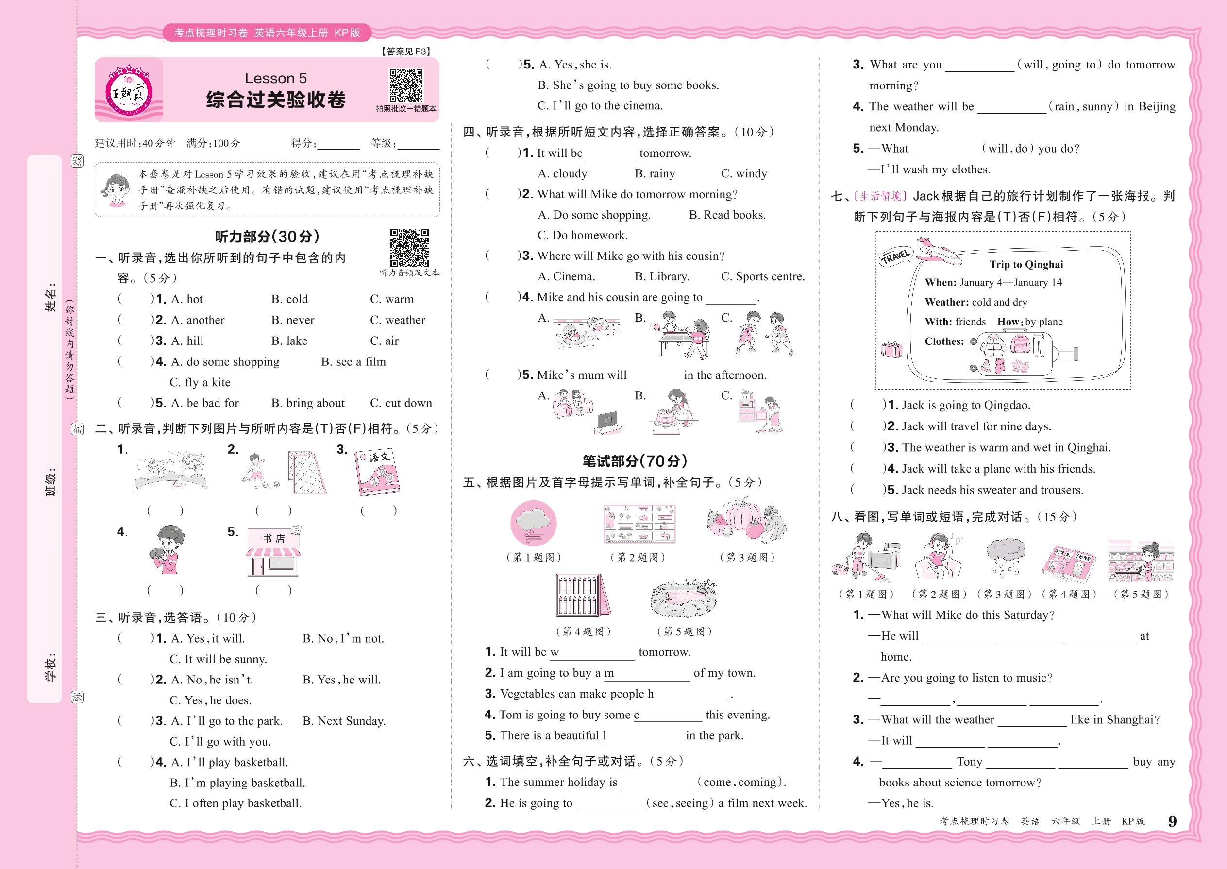 2024秋上册六年级英语科普版 Lesson 5 综合过关验收卷