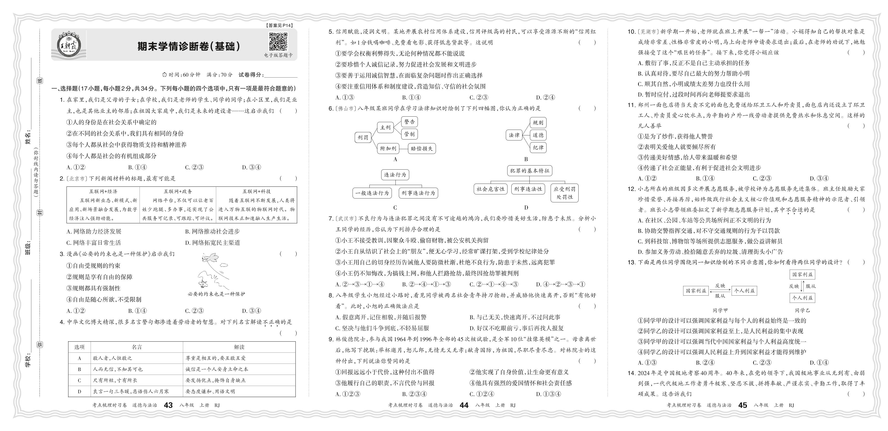 2024秋上册八年级道德与法治人教版 期末学情诊断卷(基础)