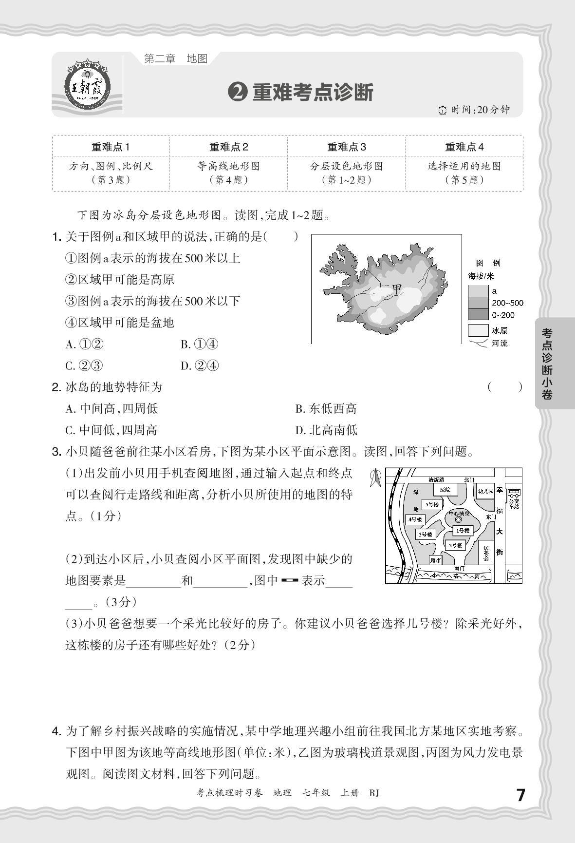 2024秋上册七年级地理人教版 第二章 考点诊断小卷 重难考点诊断【2】