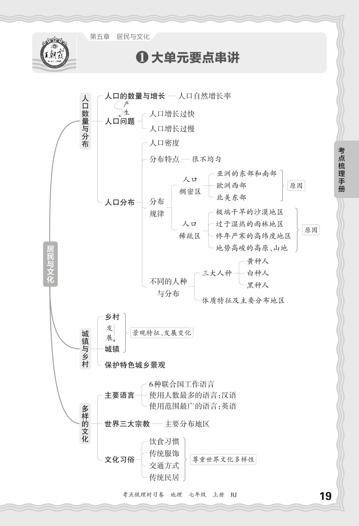 2024秋上册七年级地理人教版 考点梳理手册——第五章 居民与文化