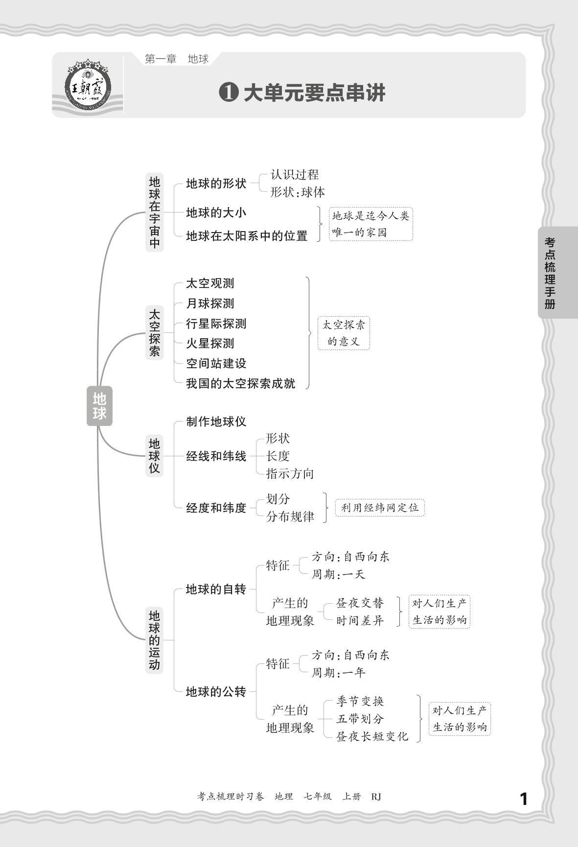 2024秋上册七年级地理人教版 考点梳理手册——第一章 地球