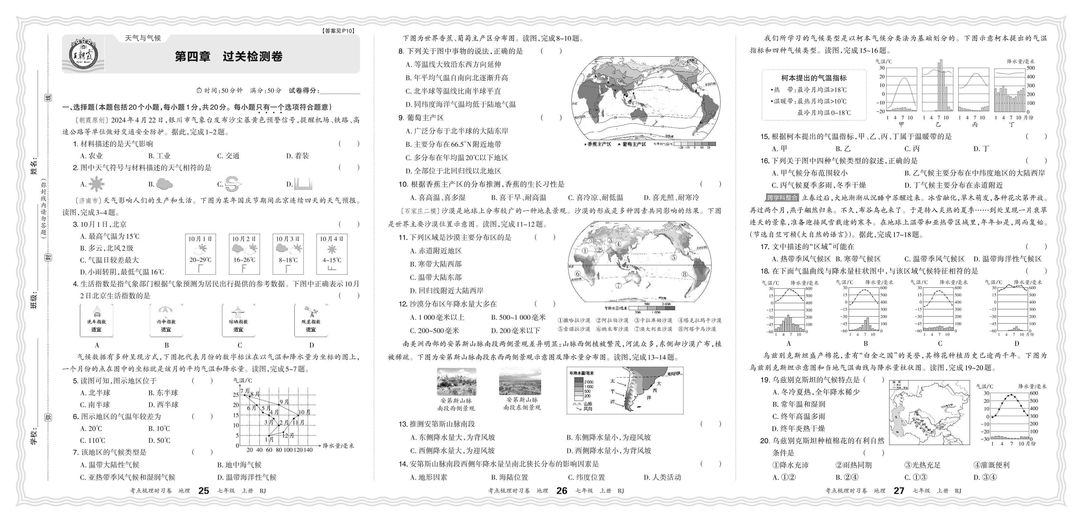 2024秋上册七年级地理人教版 第四章 过关检测卷