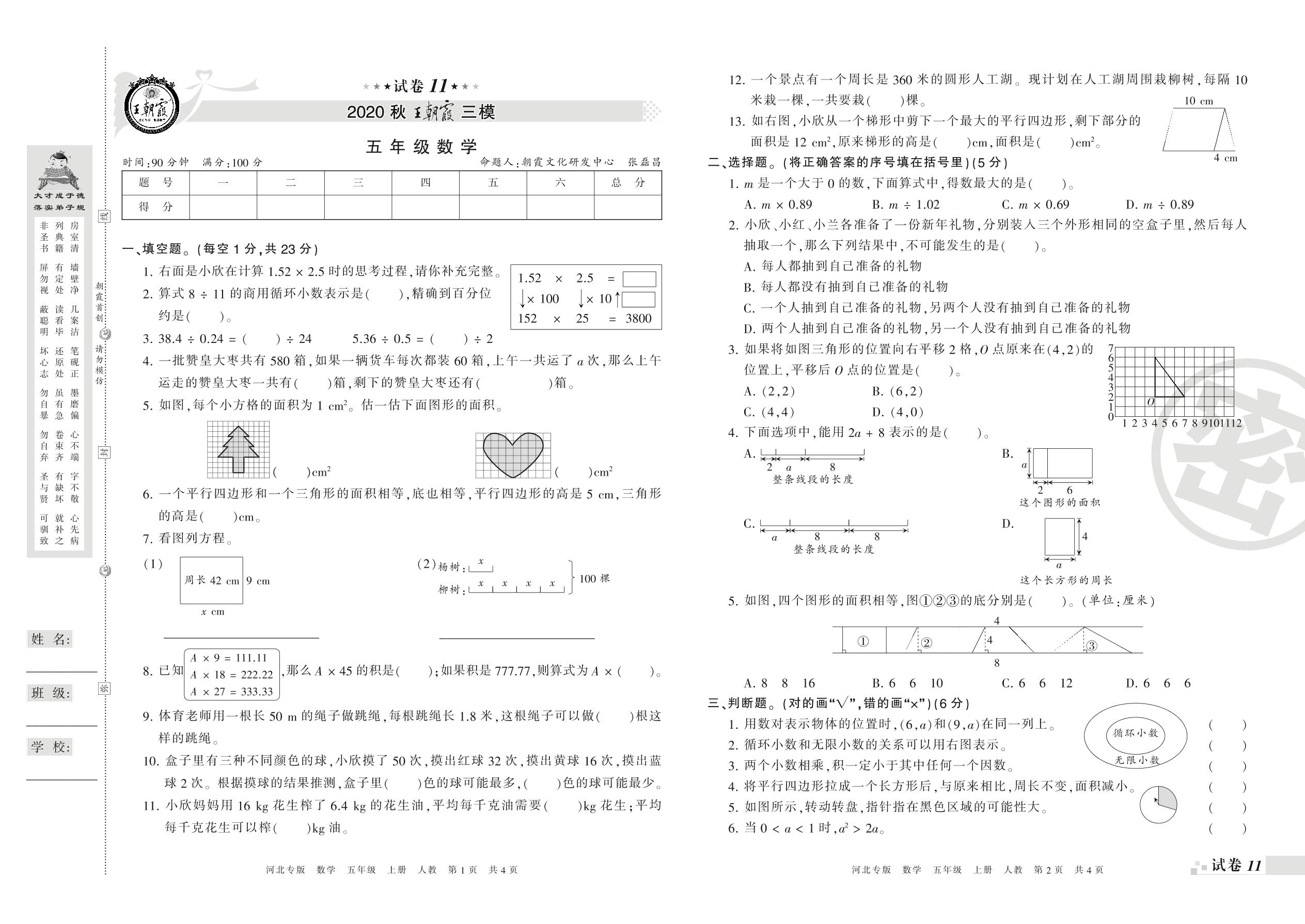 王朝霞期末模拟卷五年级上册数学(人教版)【11】