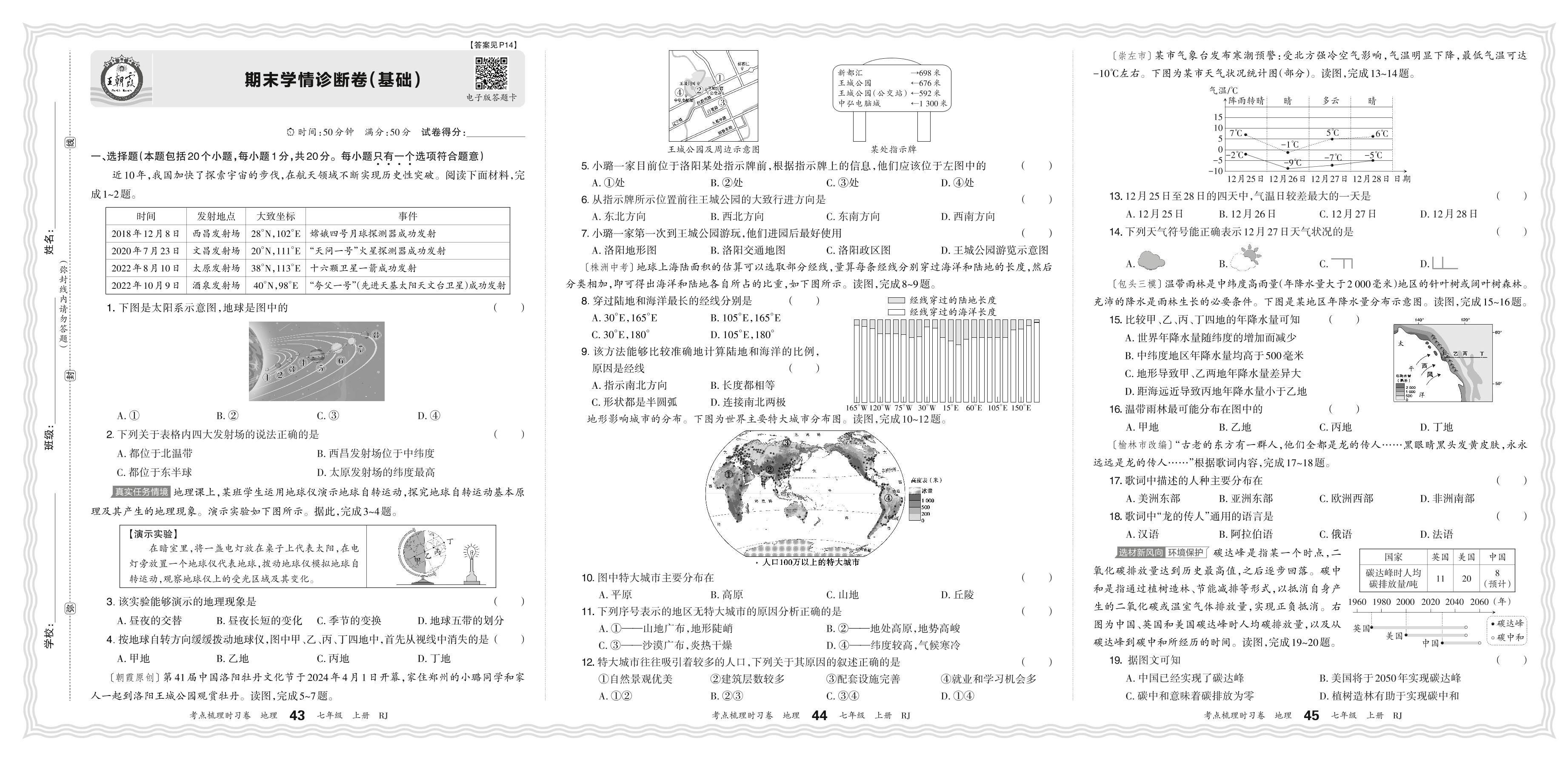 2024秋上册七年级地理人教版 期末学情诊断卷(基础)
