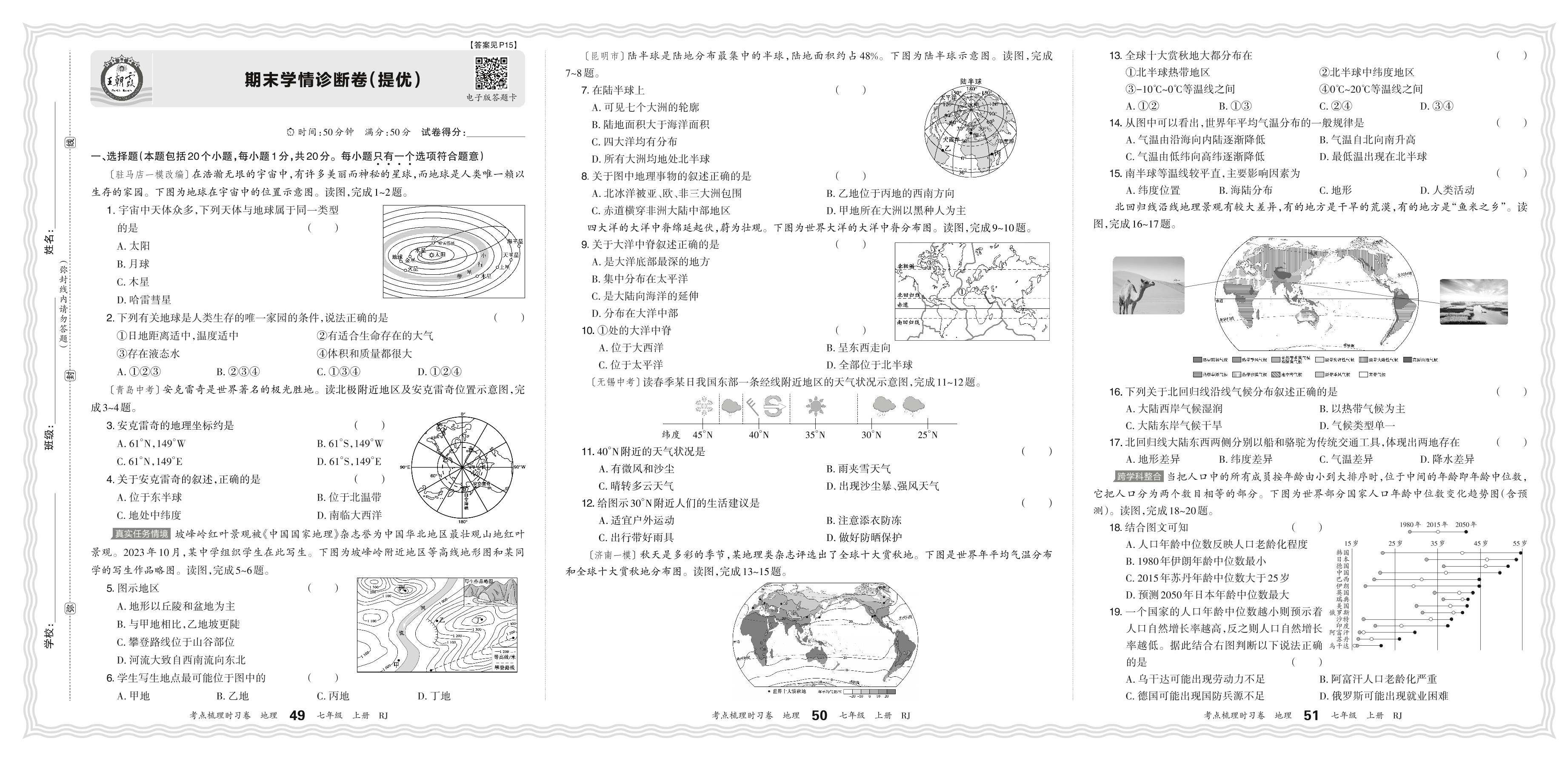 2024秋上册七年级地理人教版 期末学情诊断卷(提优)