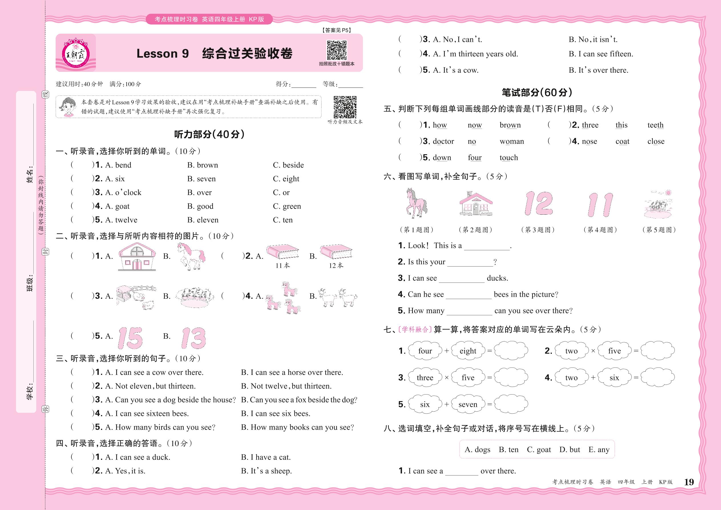 2024秋上册四年级英语科普版 Lesson 9 综合过关验收卷