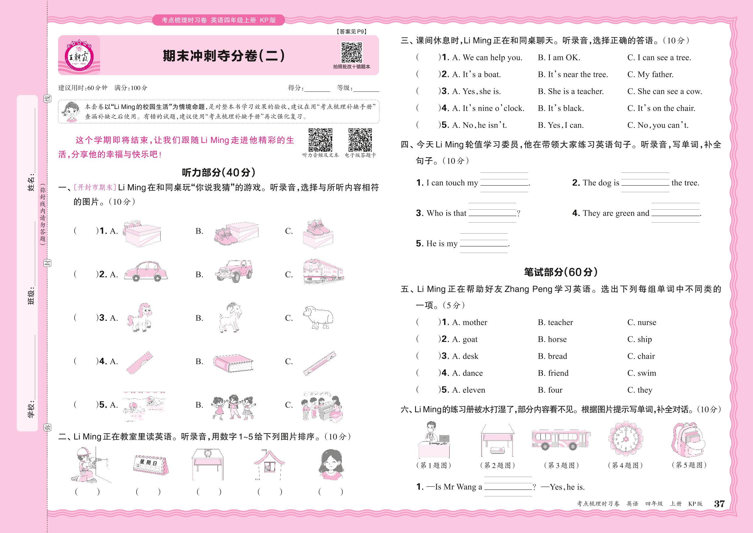 2024秋上册四年级英语科普版 期末冲刺夺分卷(二)