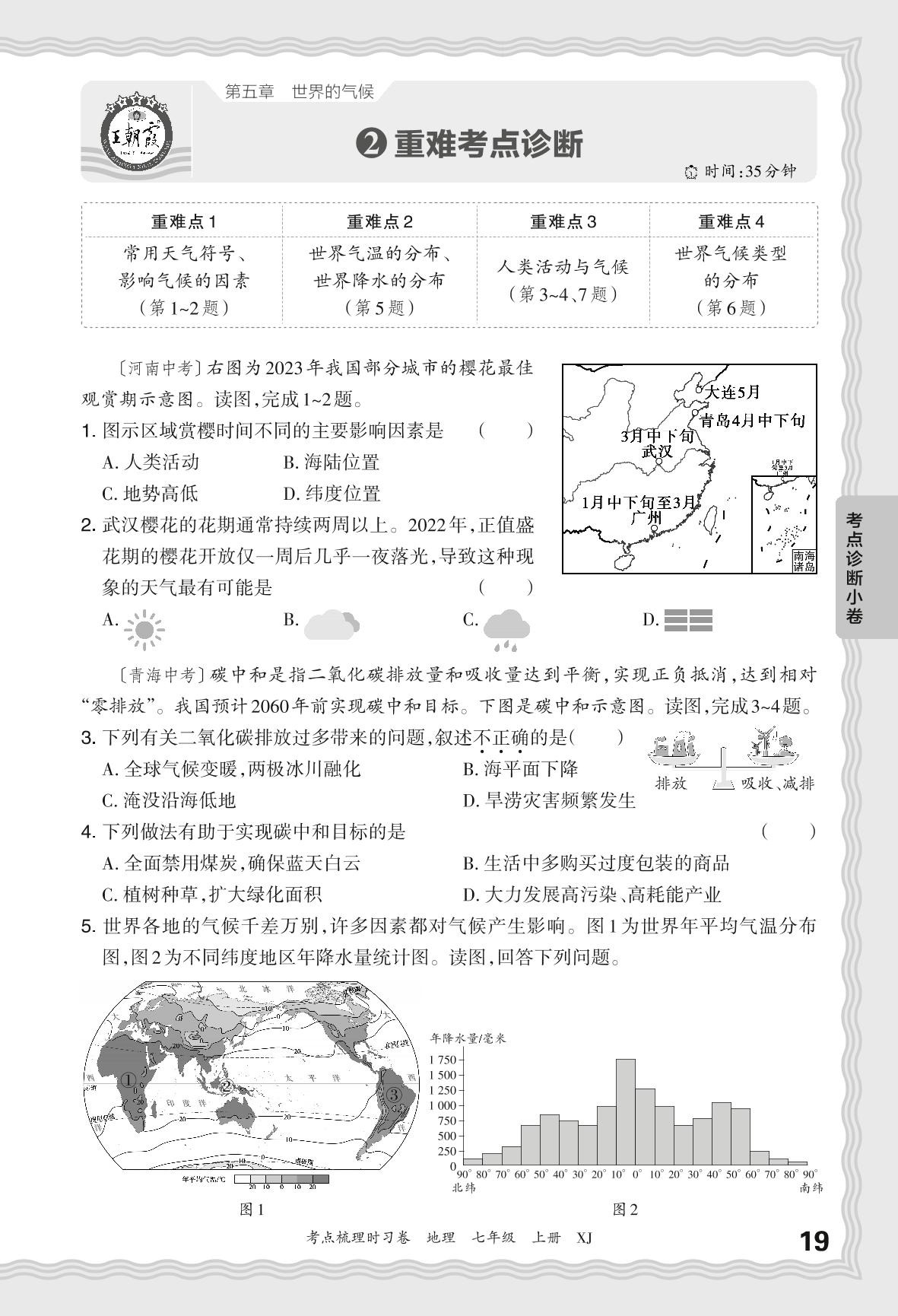 2024秋上册七年级地理湘教版 第五章 考点诊断小卷 重难考点诊断【2】