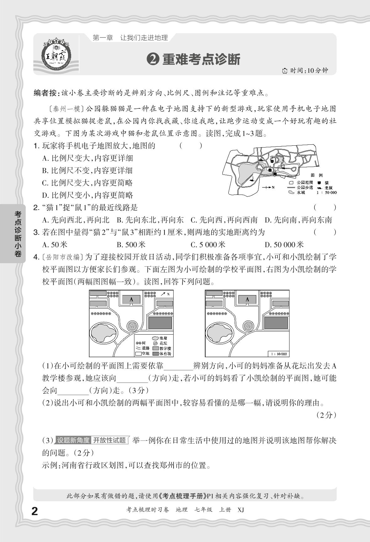 2024秋上册七年级地理湘教版 第一章 考点诊断小卷 重难考点诊断【2】
