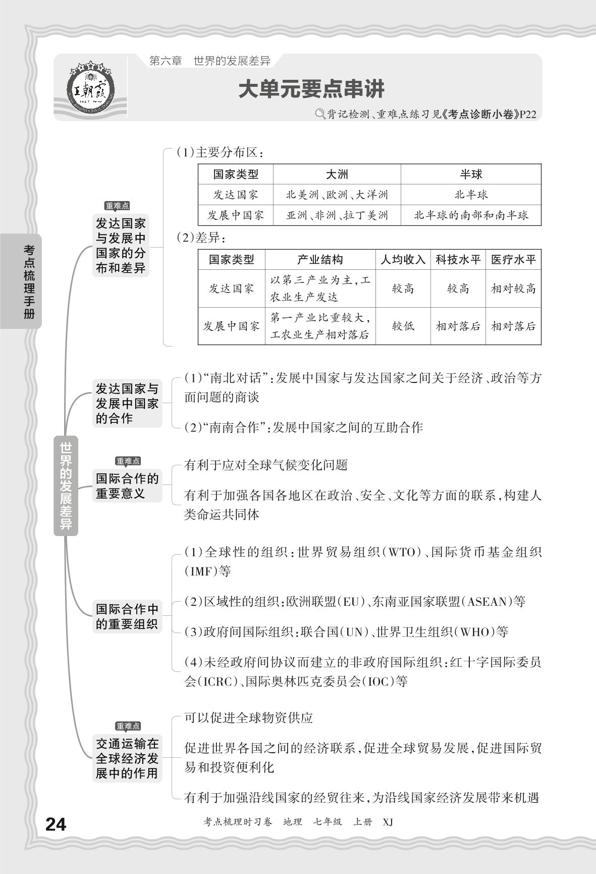 2024秋上册七年级地理湘教版 考点梳理手册——第六章 世界的发展差异