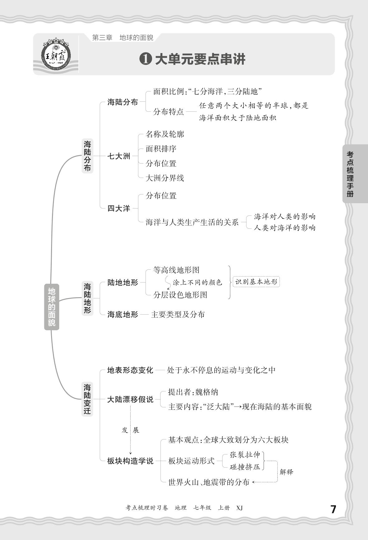2024秋上册七年级地理湘教版 考点梳理手册——第三章 地球的面貌