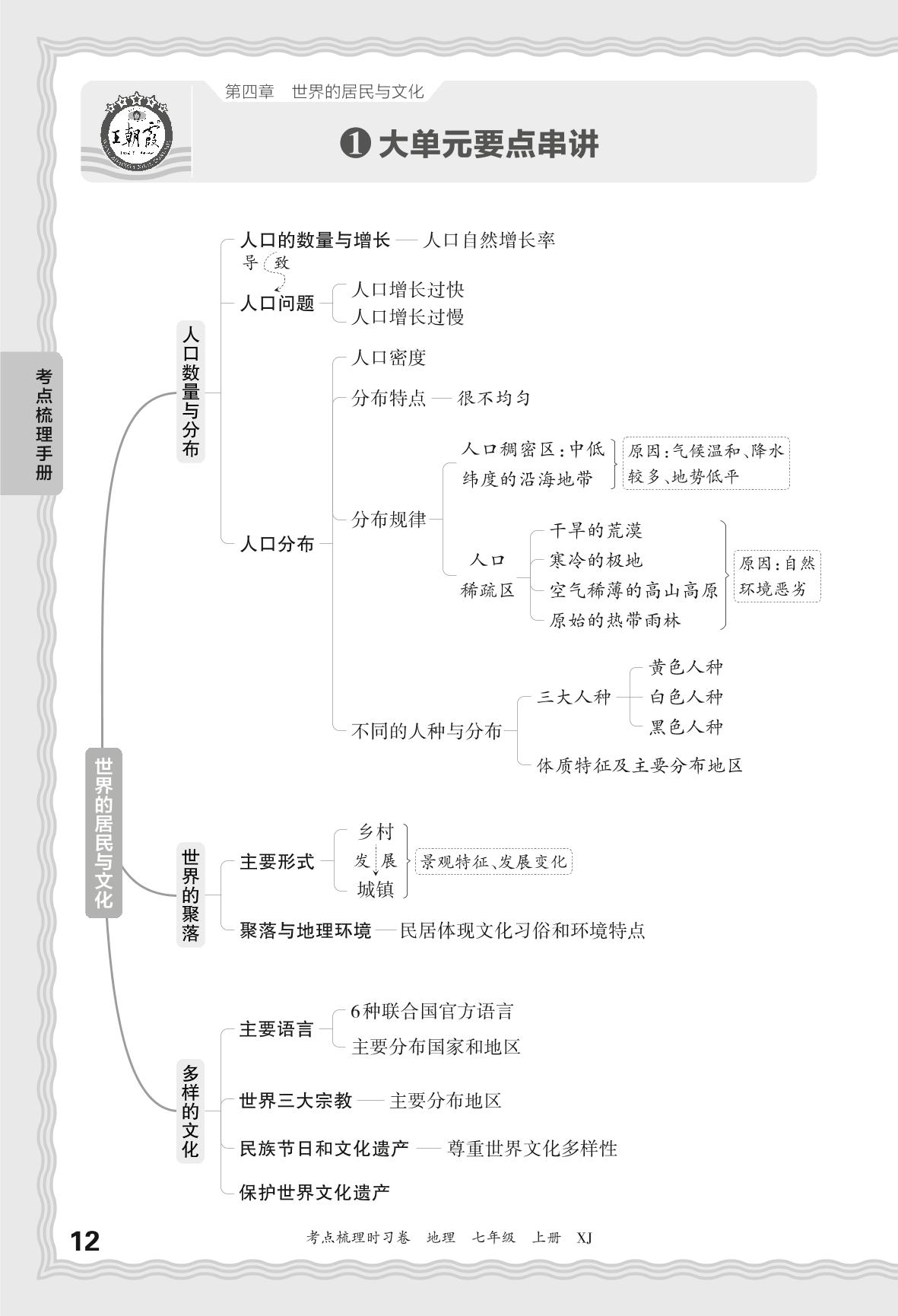 2024秋上册七年级地理湘教版 考点梳理手册——第四章 世界的居民与文化