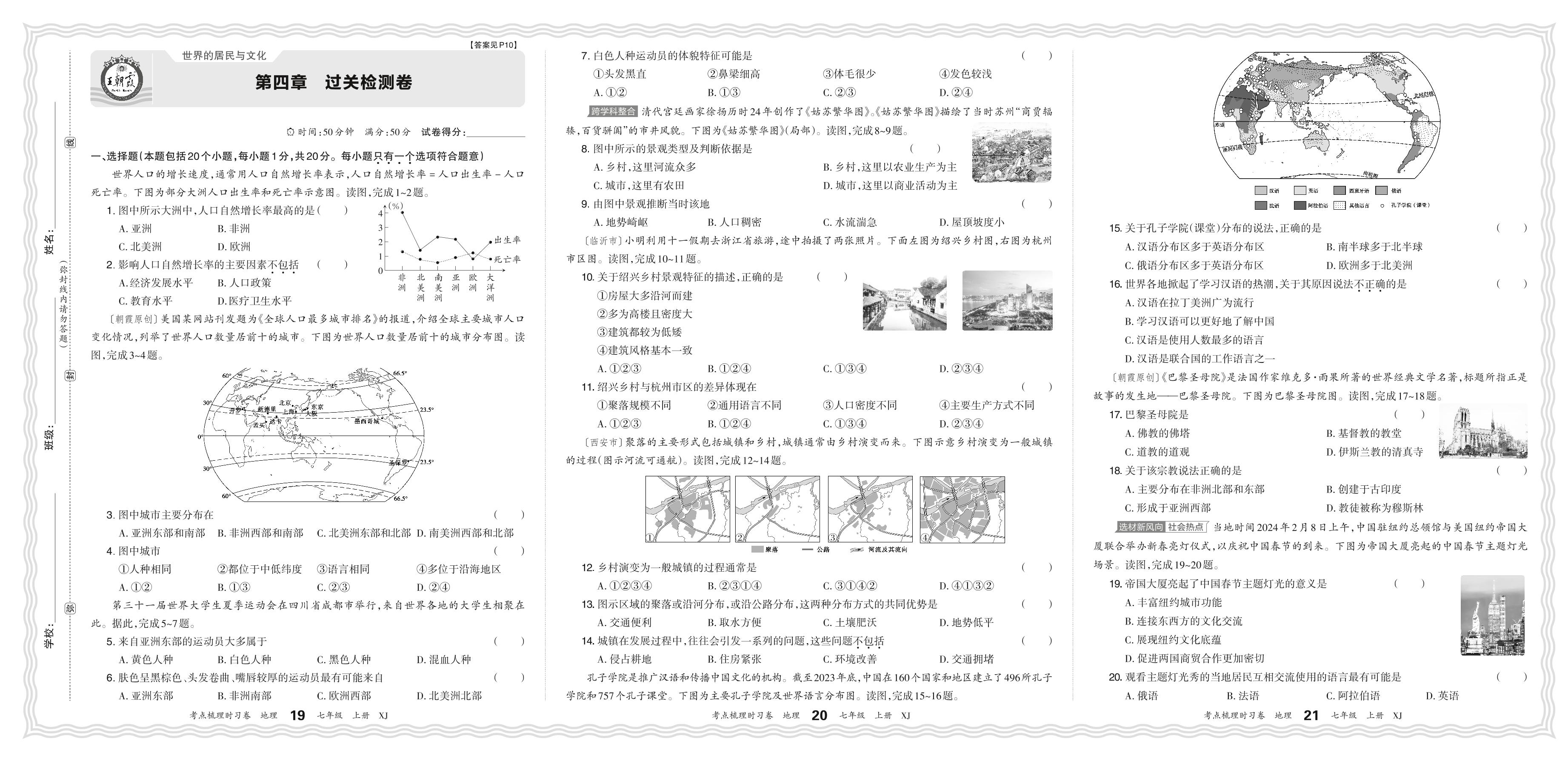 2024秋上册七年级地理湘教版 第四章 过关检测卷