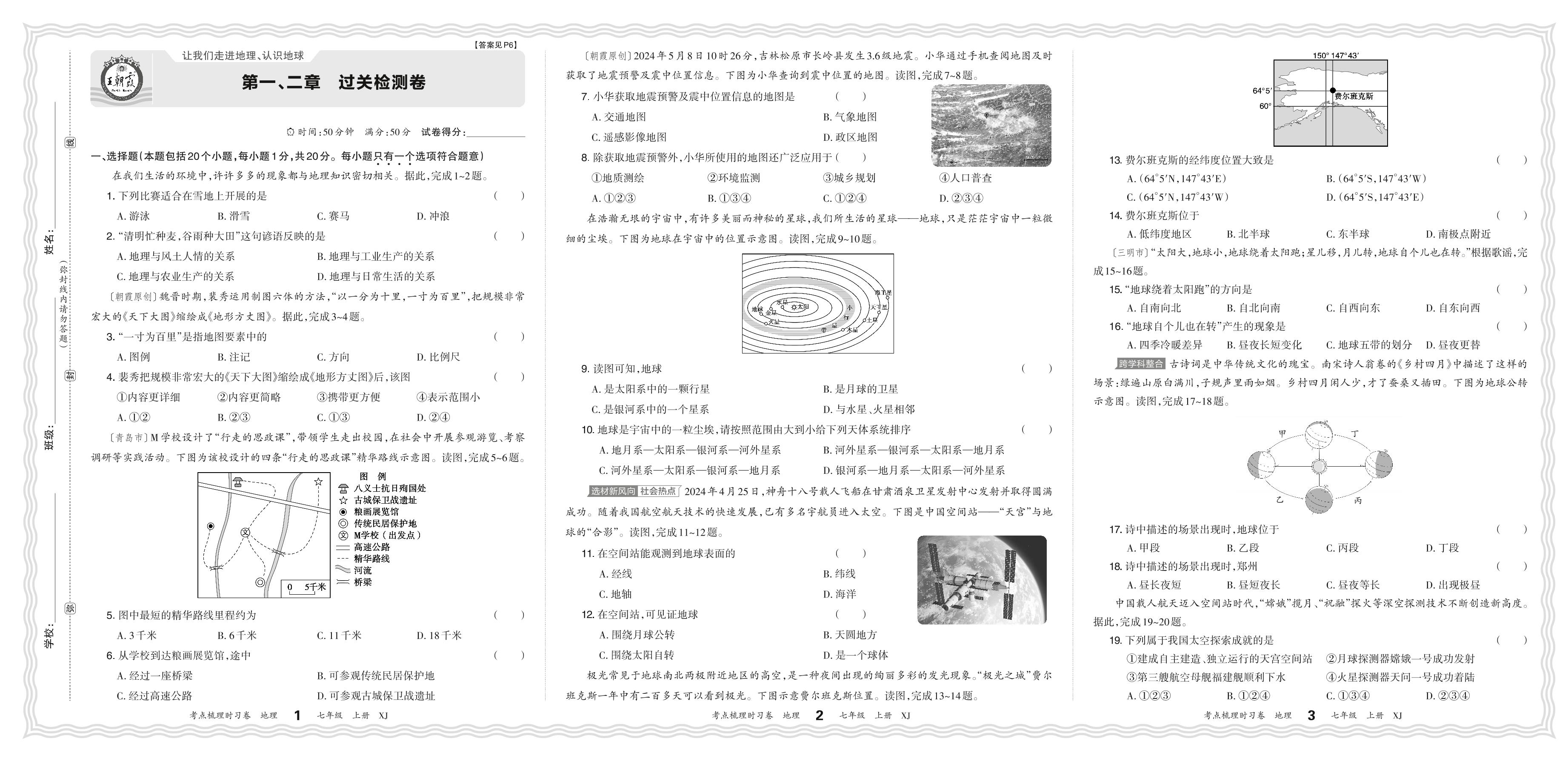 2024秋上册七年级地理湘教版 第一、二章 过关检测卷