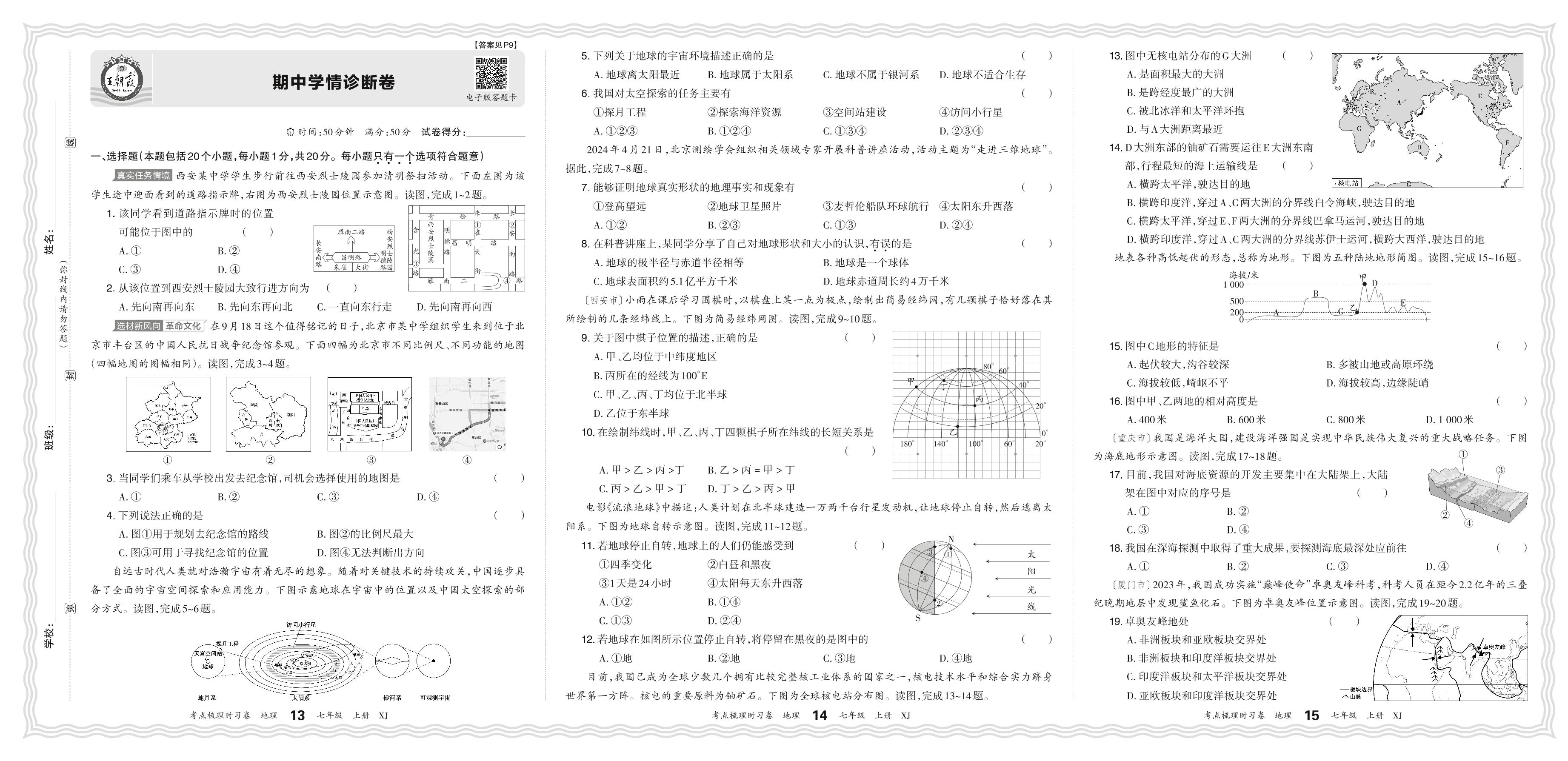 七年级地理湘教版(2024)上册期中卷
