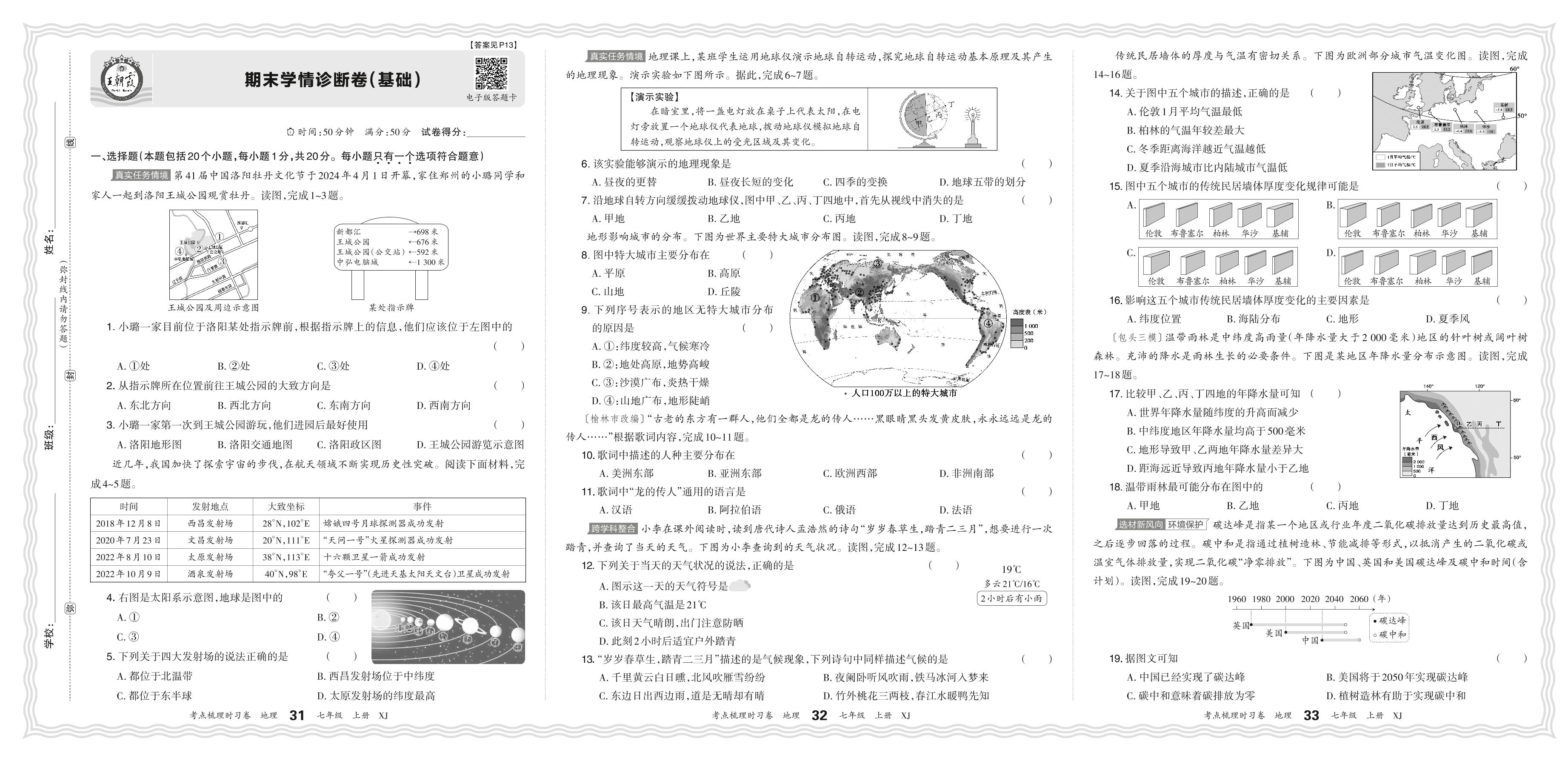 2024秋上册七年级地理湘教版 期末学情诊断卷(基础)