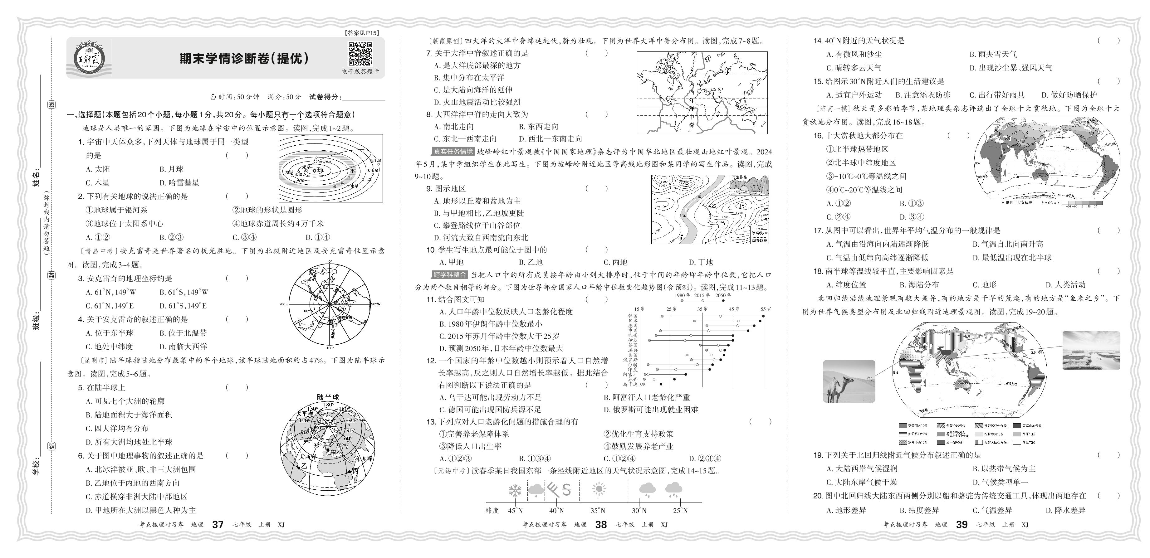 2024秋上册七年级地理湘教版 期末学情诊断卷(提优)