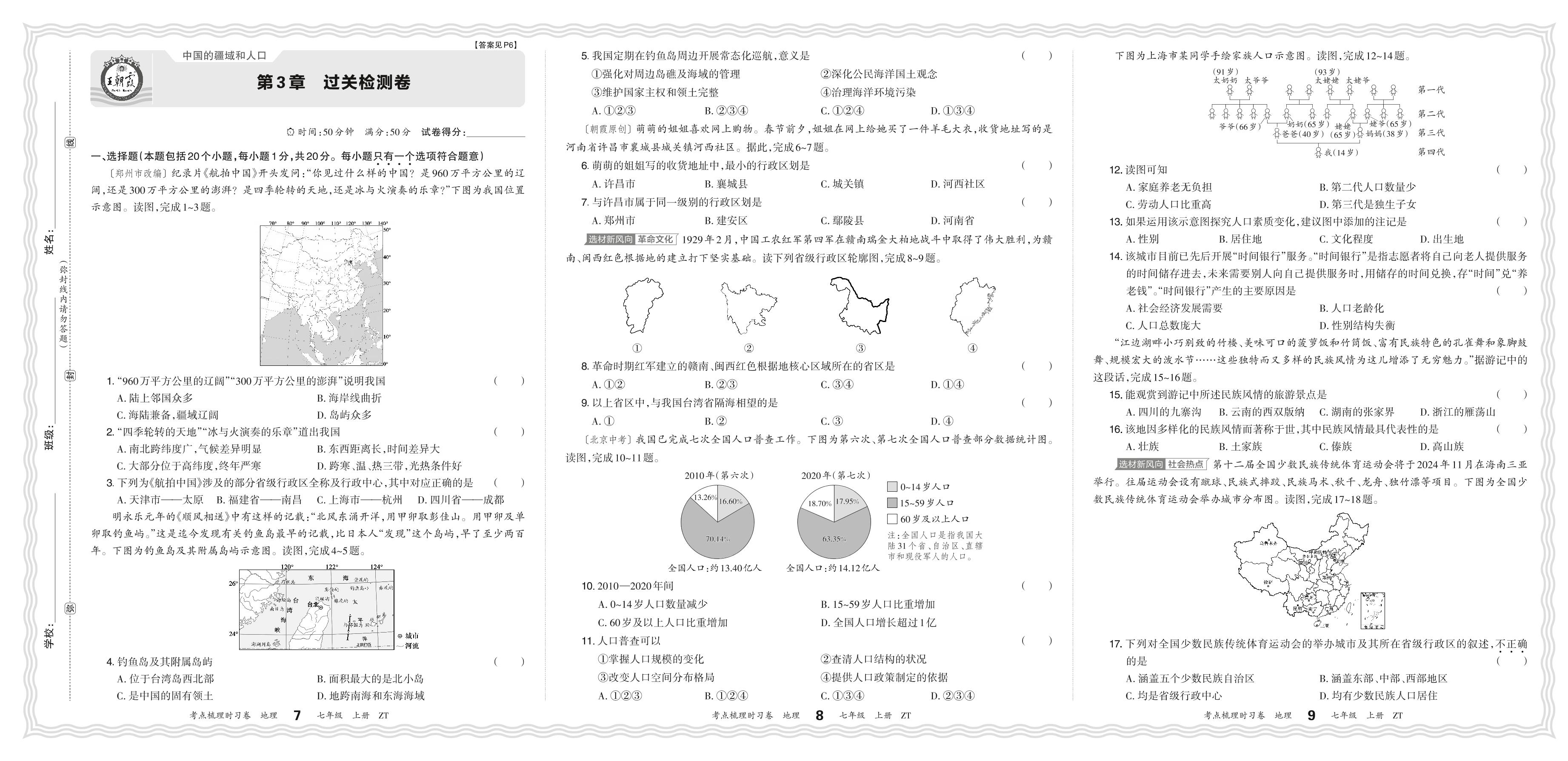2024秋上册七年级地理中图版 第3章 过关检测卷