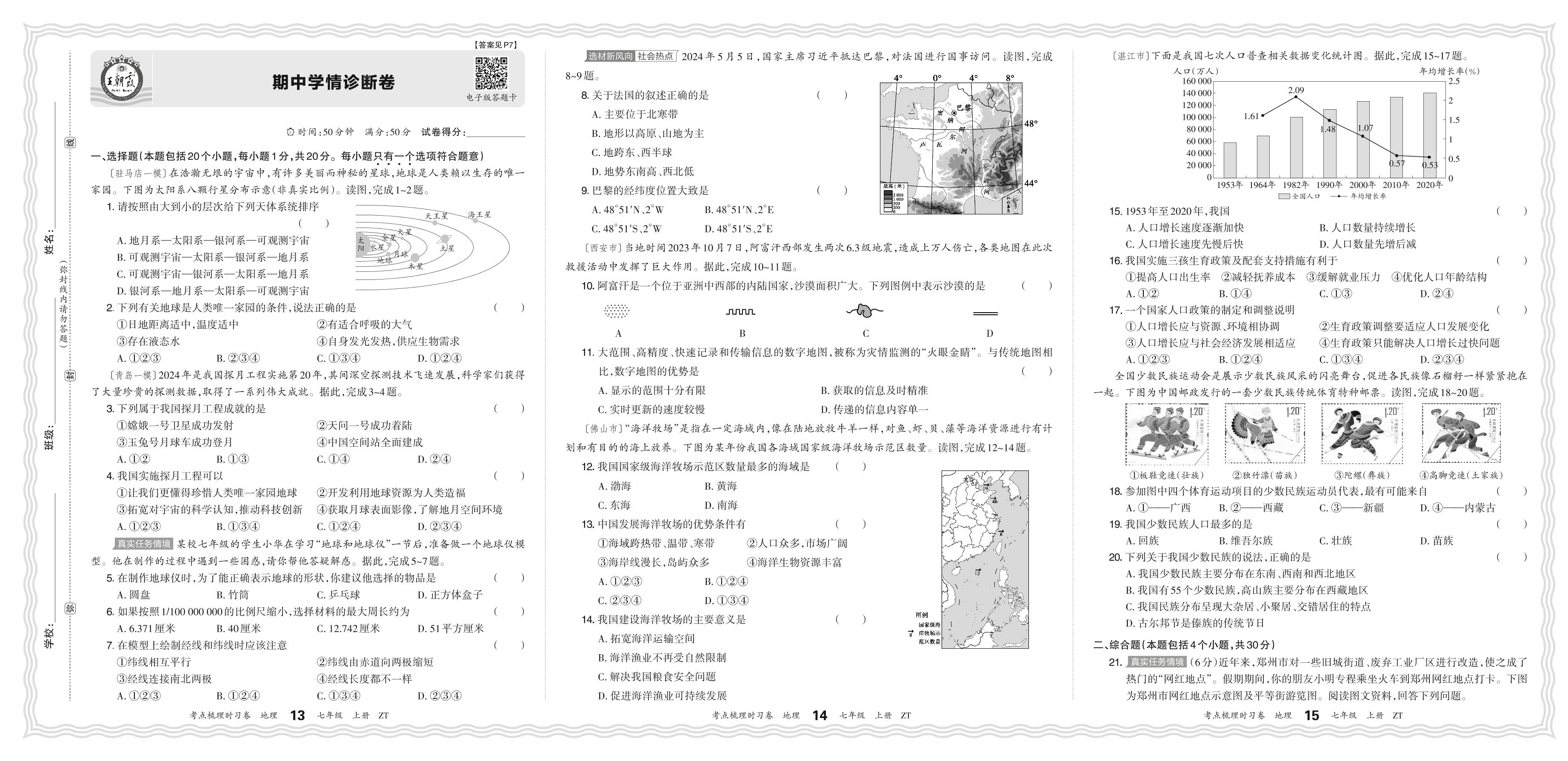 2024秋上册七年级地理中图版 期中学情诊断卷