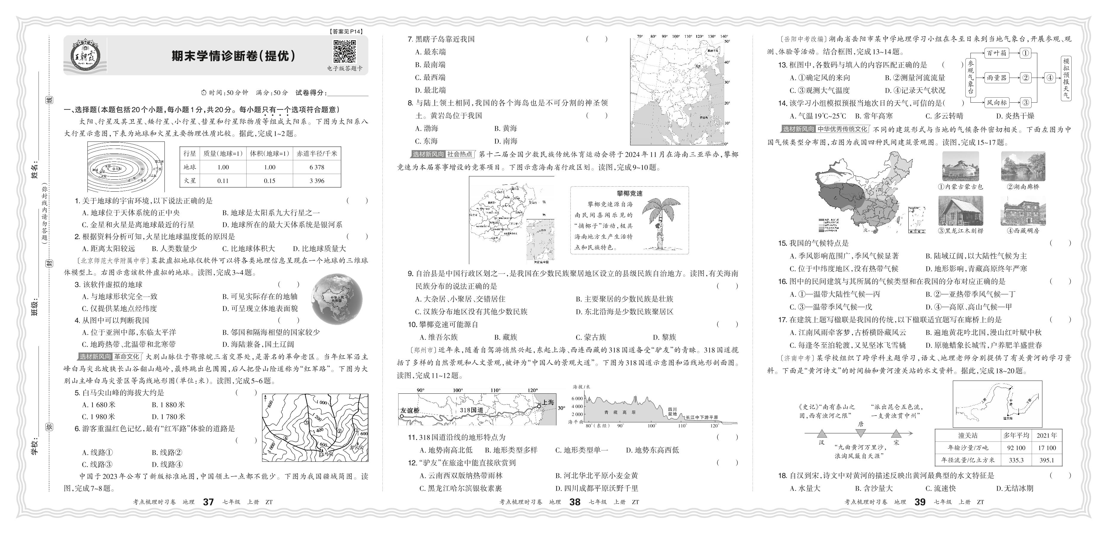 2024秋上册七年级地理中图版 期末学情诊断卷(提优)