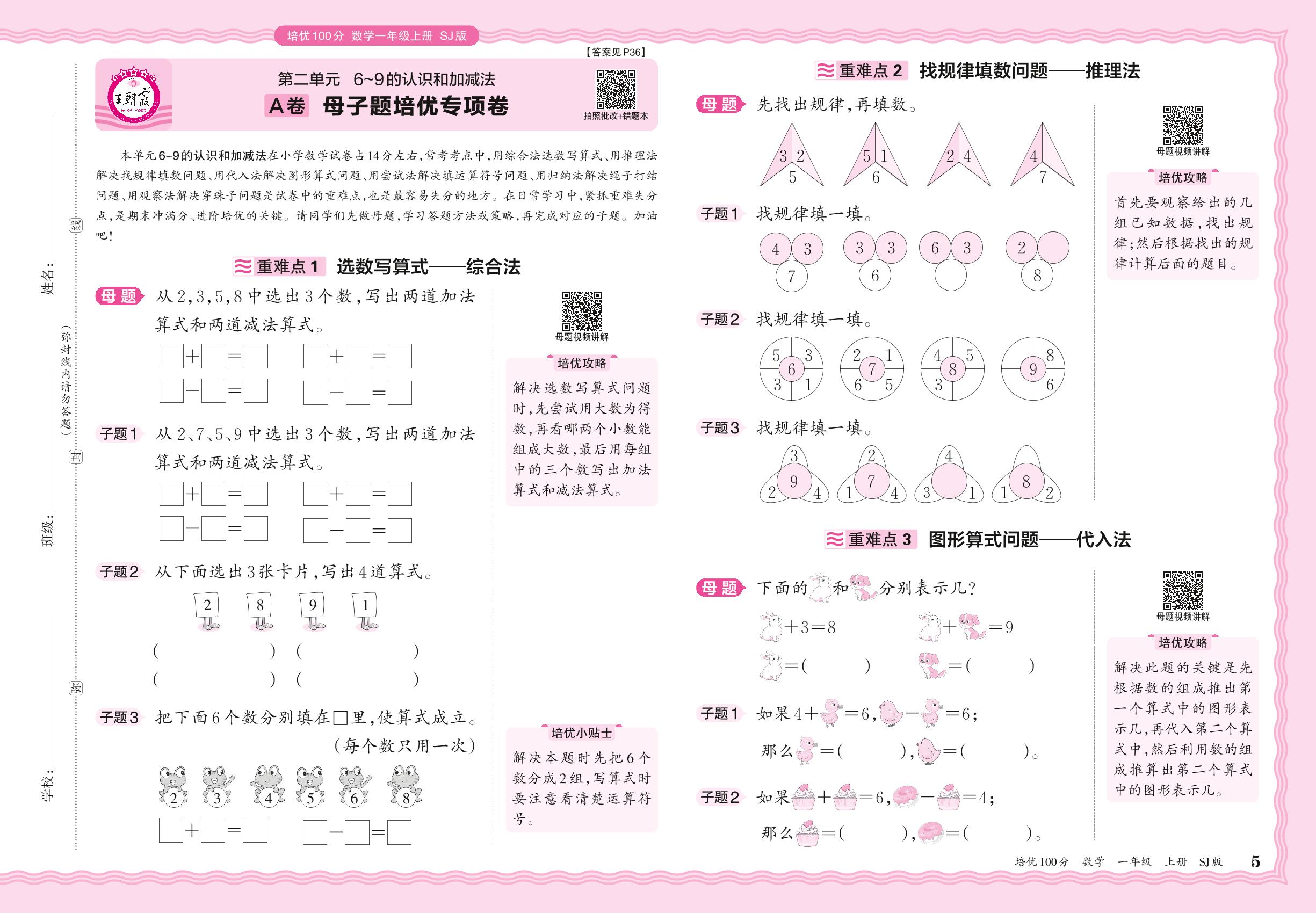 2024秋上册一年级数学苏教版 第二单元A卷 母子题培优专项卷