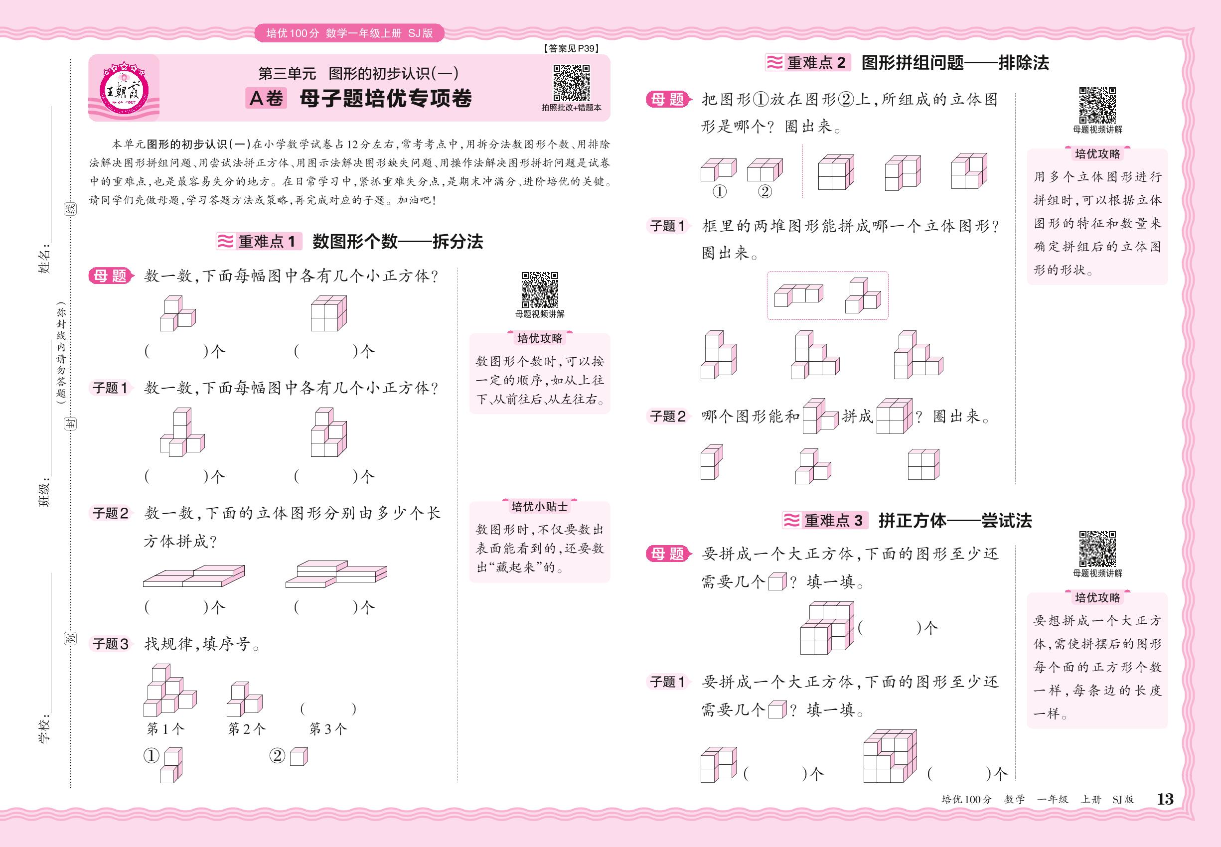 2024秋上册一年级数学苏教版 第三单元A卷 母子题培优专项卷