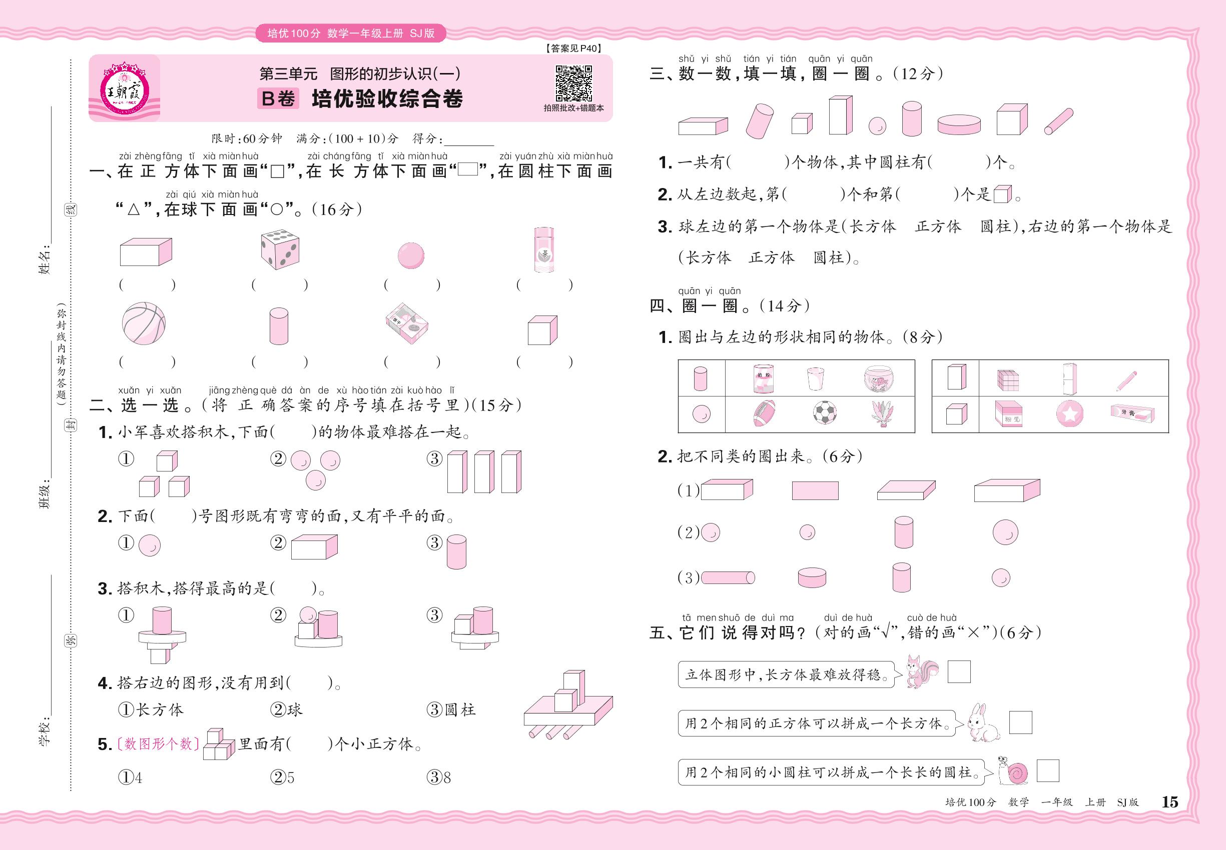 2024秋上册一年级数学苏教版 第三单元B卷 培优验收综合卷