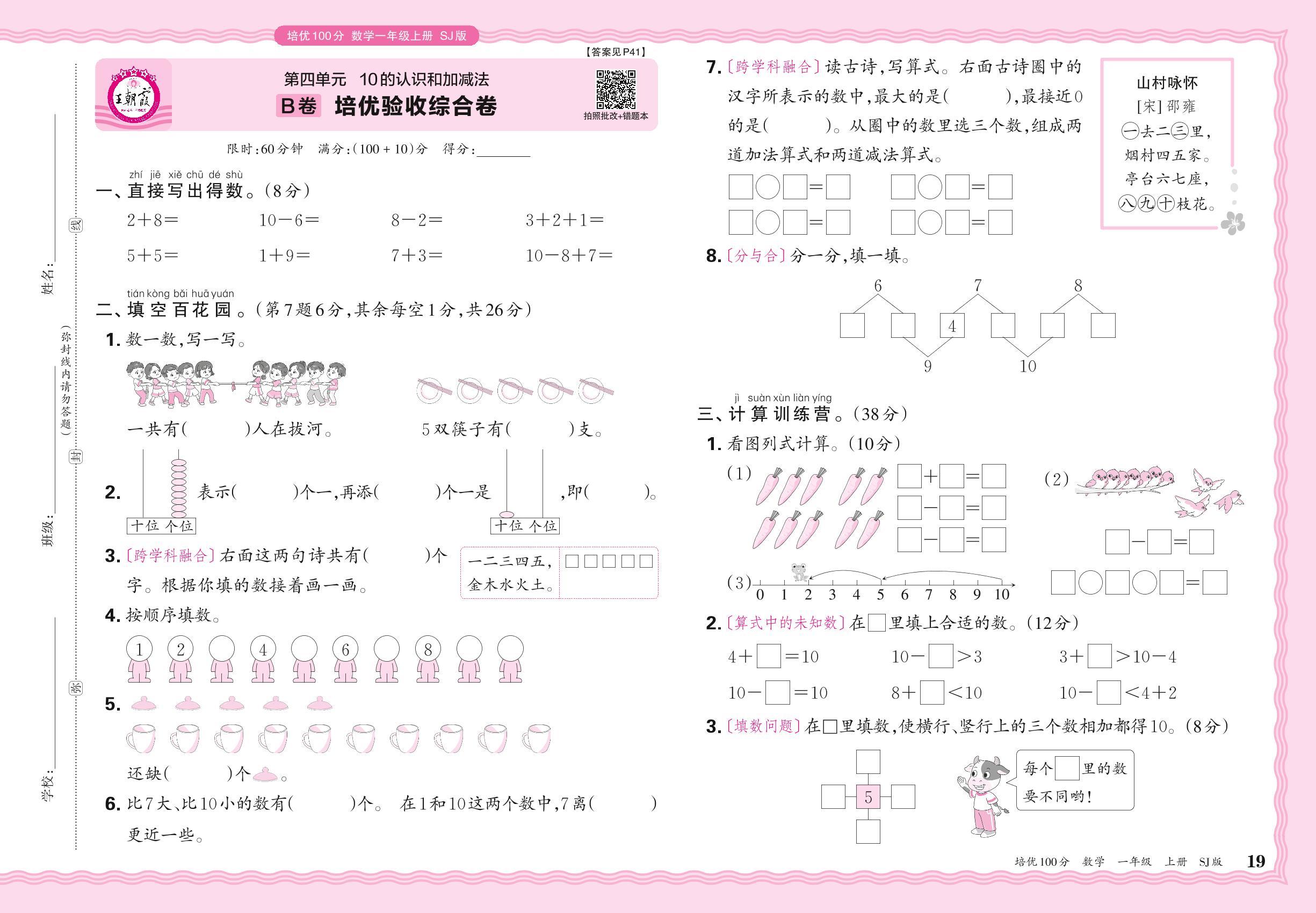 2024秋上册一年级数学苏教版 第四单元B卷 培优验收综合卷
