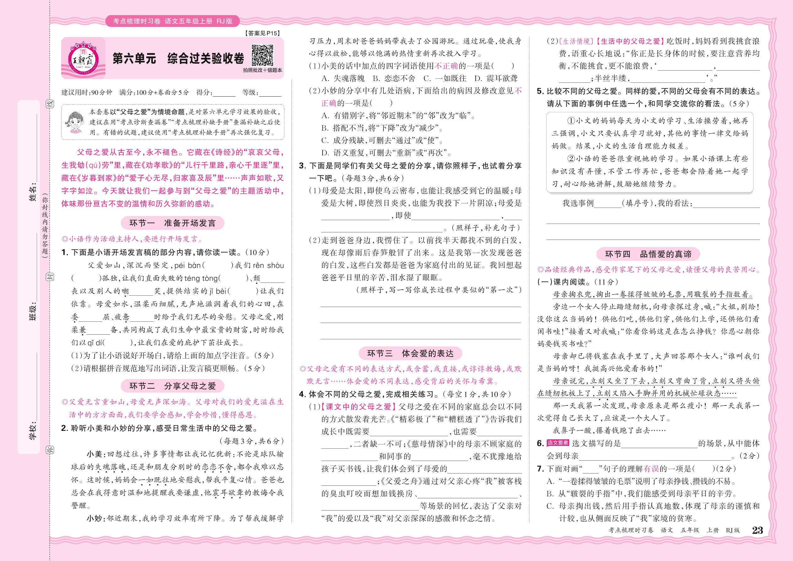 2024秋上册五年级语文人教版 第六单元 综合过关验收卷