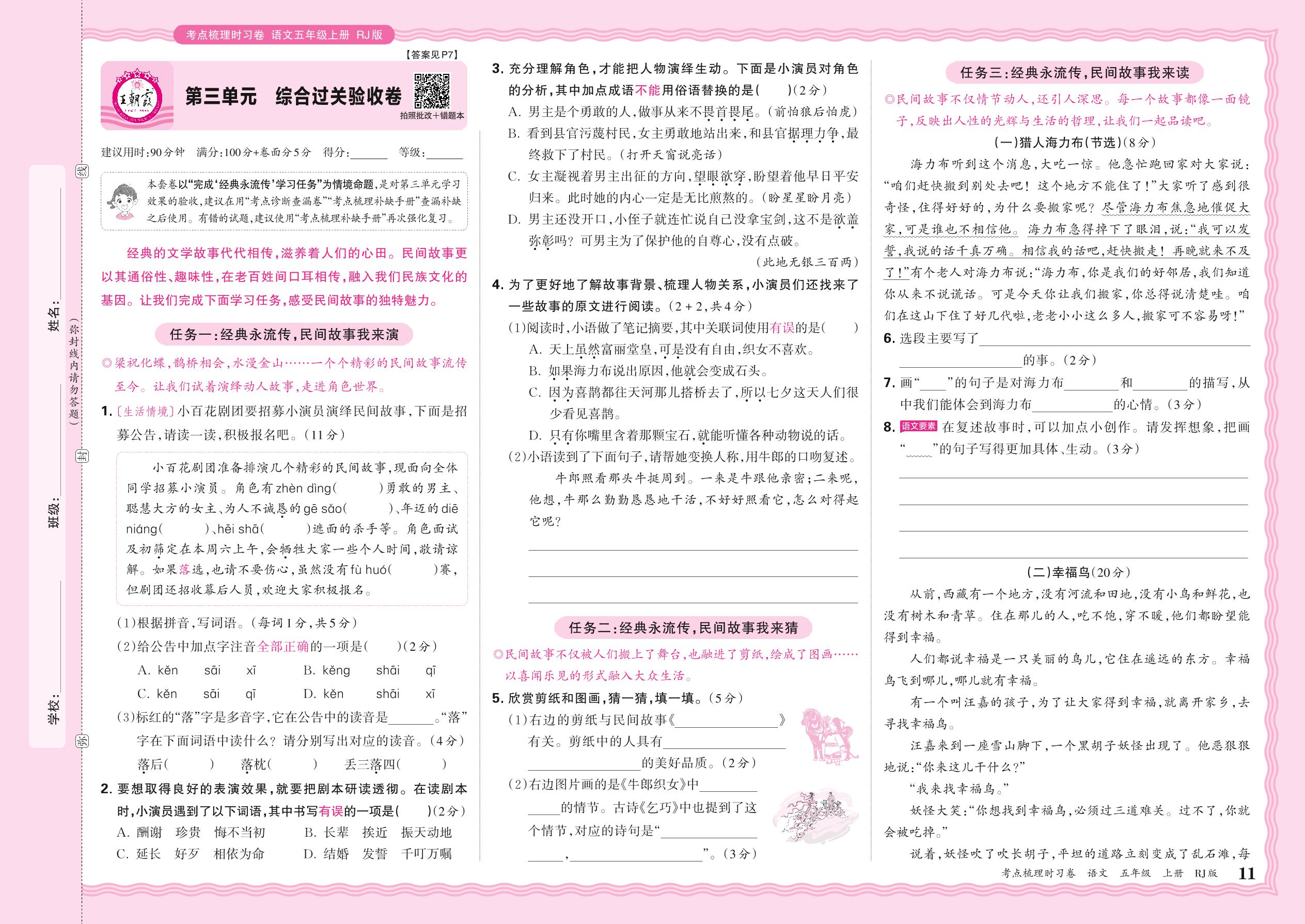五年级语文人教版上册单元卷