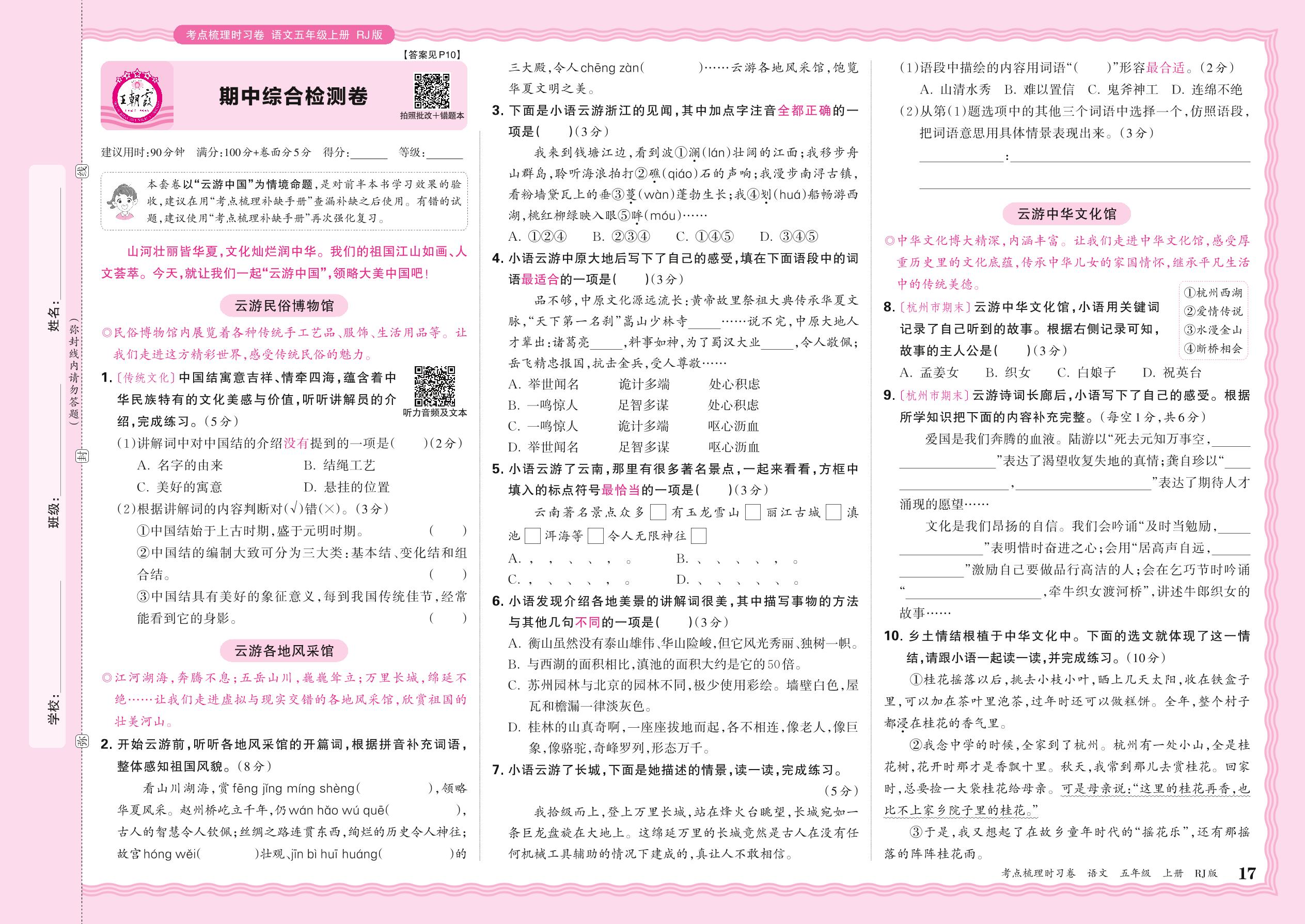五年级语文人教版上册期中卷