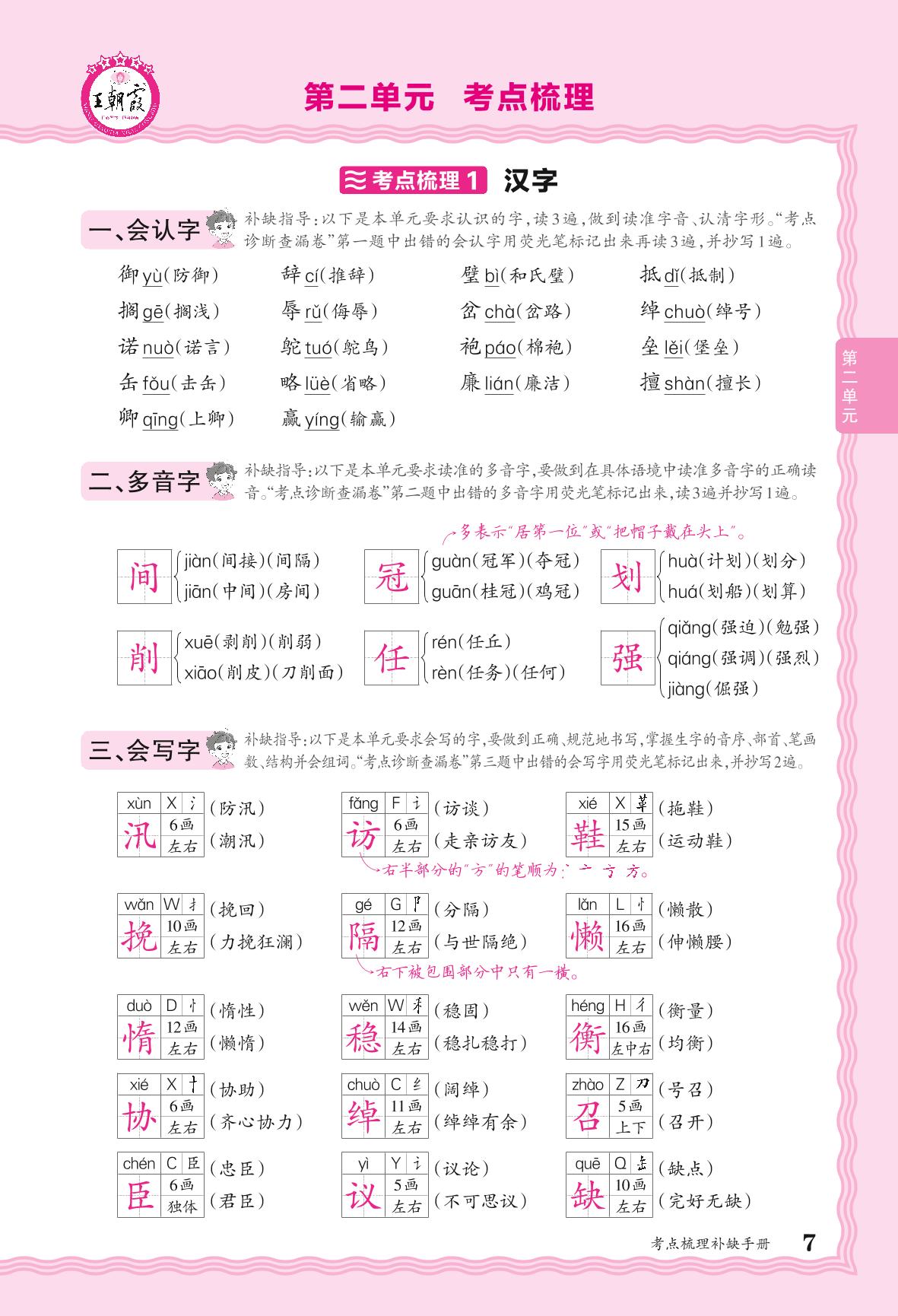 2024秋上册五年级语文人教版 考点梳理补缺手册——第二单元