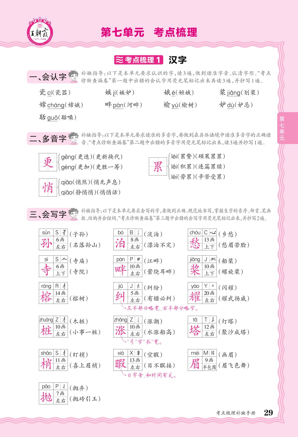 2024秋上册五年级语文人教版 考点梳理补缺手册——第七单元