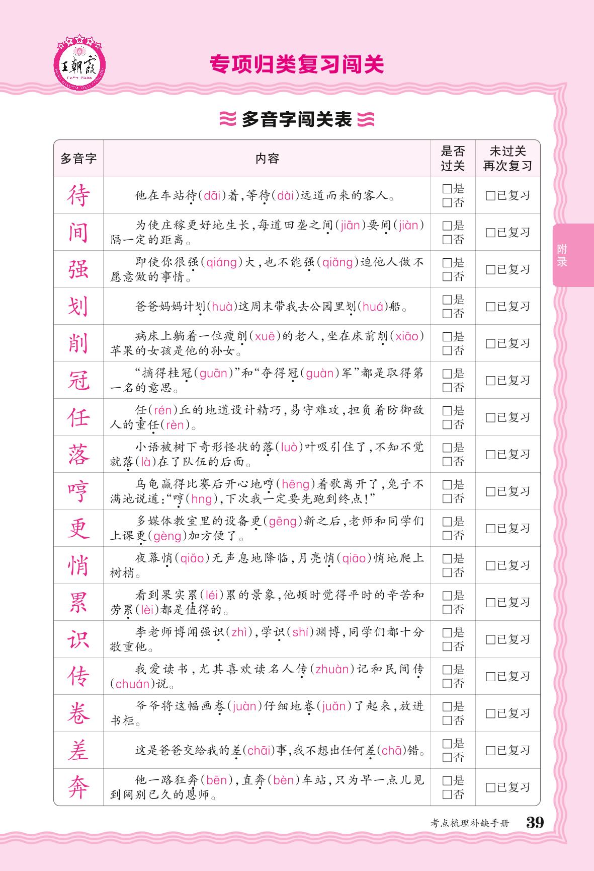 2024秋上册五年级语文人教版 考点梳理补缺手册——专项归类复习闯关