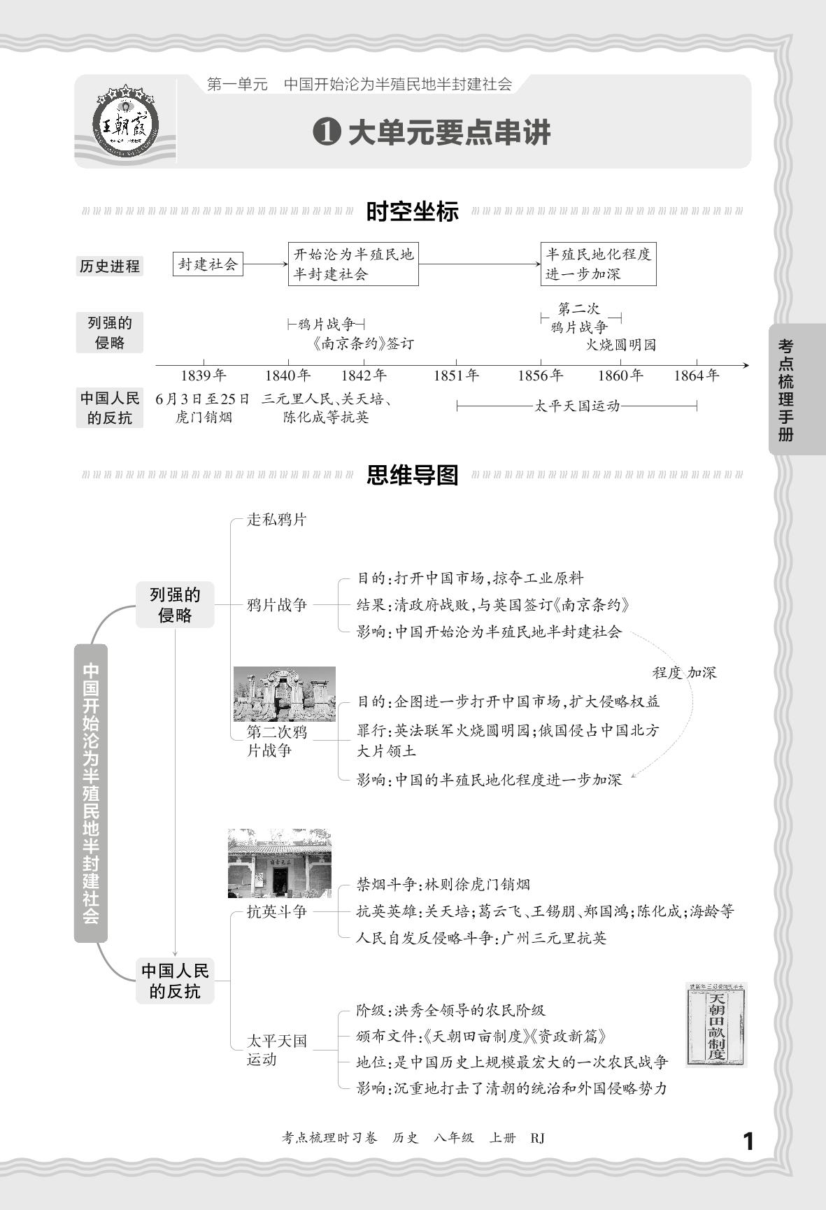 2024秋上册八年级历史人教版 考点梳理手册——第一单元 中国开始沦为半殖民地半封建社会