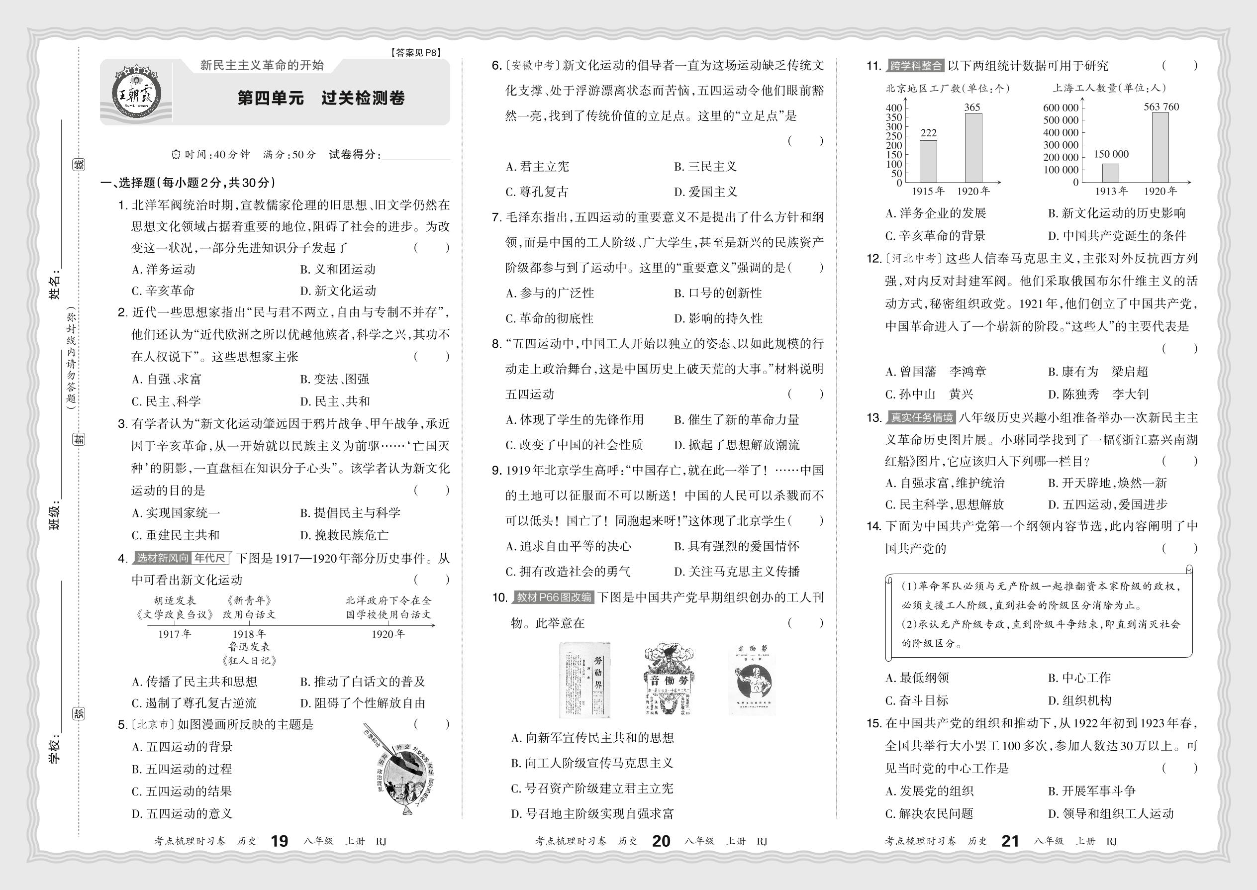 2024秋上册八年级历史人教版 第四单元 过关检测卷